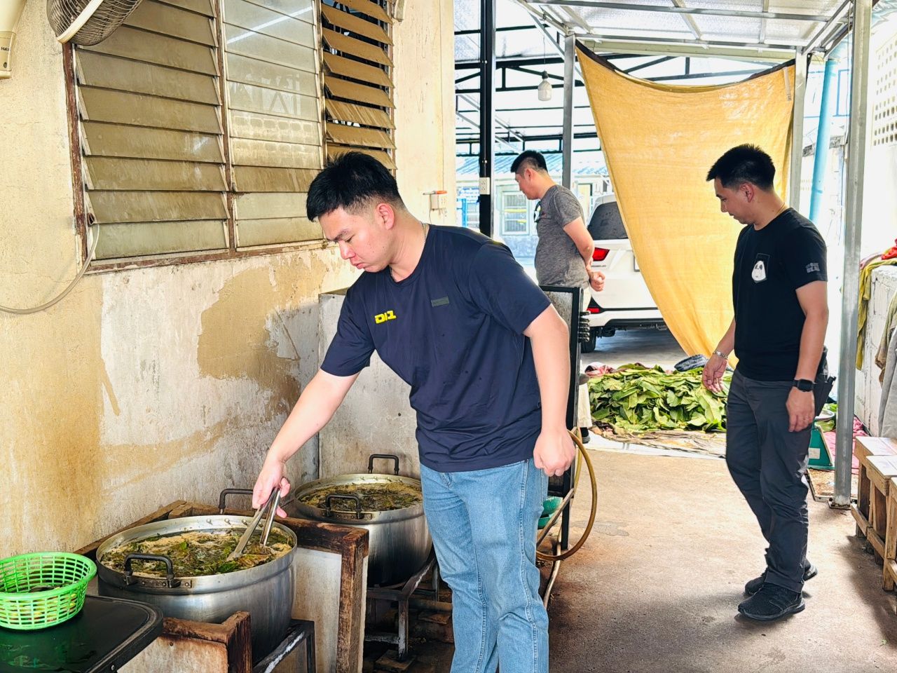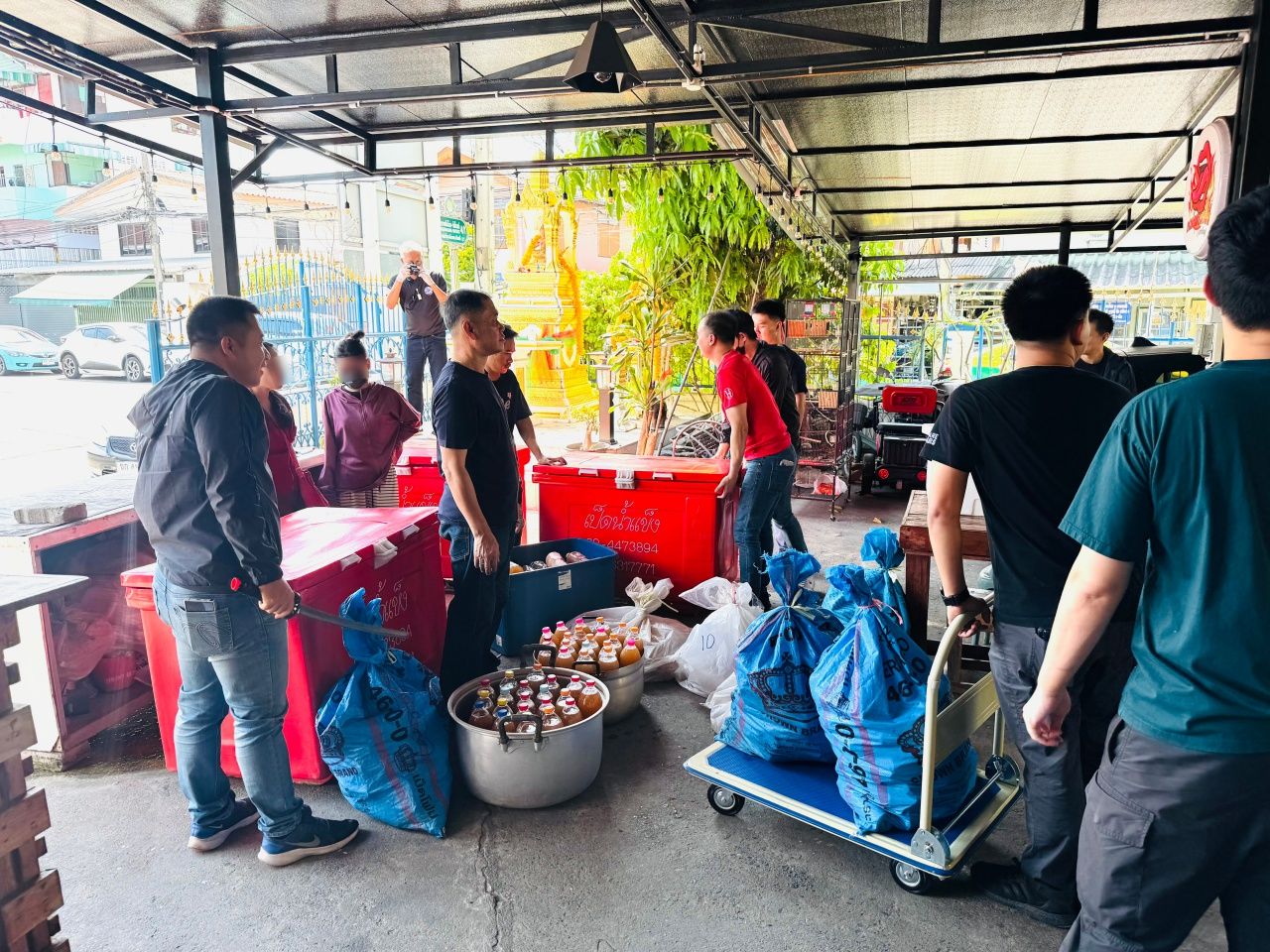 ขณะเข้าตรวจค้นพบว่าเป็นบ้านเดี่ยว 2 ชั้น มีนายสิทธิศักดิ์ จำปาทิพย์ อายุ 34 ปี แสดงตัวเป็นผู้ดูแล และคนงานชาวลาว 3 คน จากการตรวจค้นพบน้ำกระท่อม 310 ขวด แช่อยู่ในตู้เย็นและถังน้ำแข็งขนาดใหญ่ ยาแก้ไอชนิดน้ำใช้ผสมน้ำกระท่อม จำนวน 614 ขวด ขวดเปล่ายาแก้ไอ จำนวน 54 ขวด อุปกรณ์ต้มน้ำกระท่อม 1,037 ชิ้น ภายในบ้านพบบุหรี่ไฟฟ้าและน้ำยาบุหรี่ไฟฟ้า จำนวน 1,095 ชิ้น ส่วนข้างบ้านเป็นที่ต้มและบรรจุน้ำกระท่อม มีเตาและหม้อต้มใบกระท่อมหลายใบ ขวดพลาสติกใช้บรรจุน้ำกระท่อมจำนวนมาก ได้ตรวจยึดไว้เป็นของกลาง