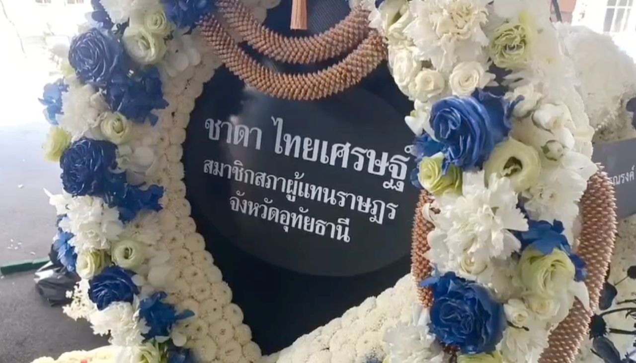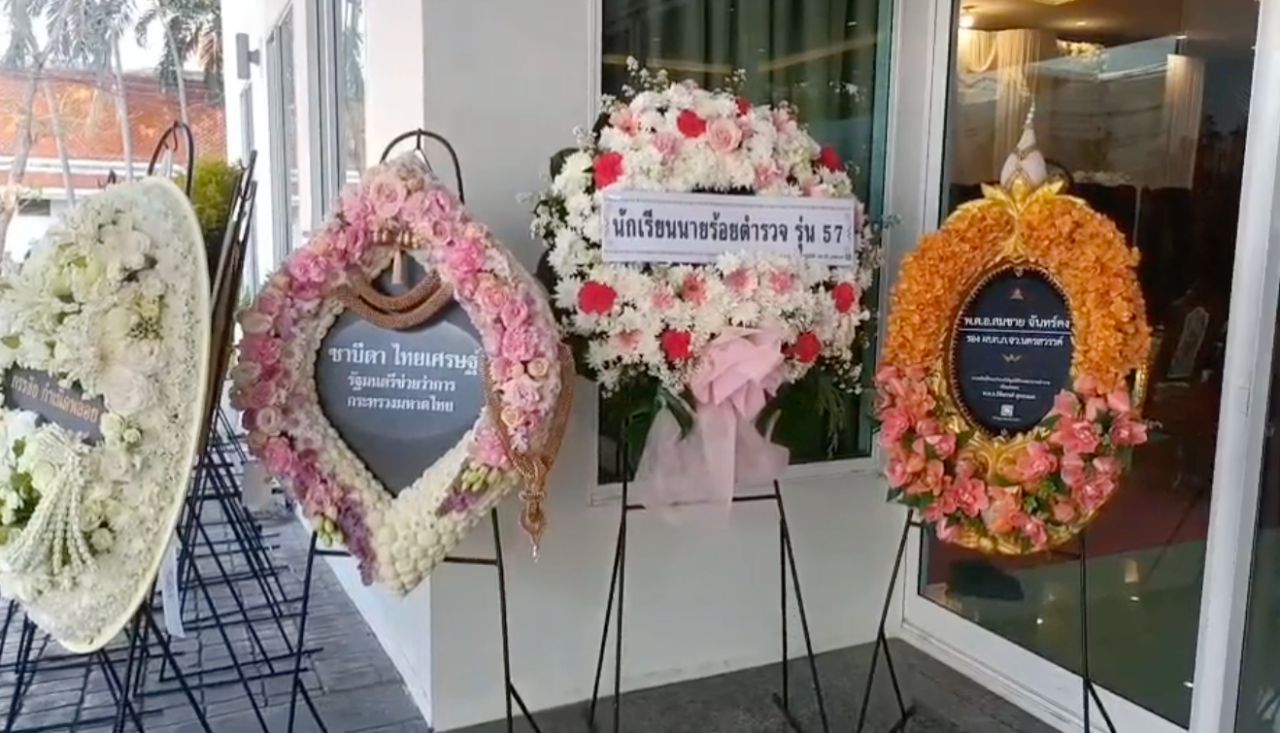 โดยบริเวณศาลา พบว่ามีพวงหรีดจากบุคคลต่างๆ ที่ส่งมาแสดงความอาลัย อาทิ นายชาดา และ น.ส.ซาบีนา ไทยเศรษฐ์ นักเรียนนายร้อยตำรวจ รุ่น 57 รวมถึง นายภูดิท หรือ กรรชัย กำเนิดพลอย พิธีกรชื่อดัง