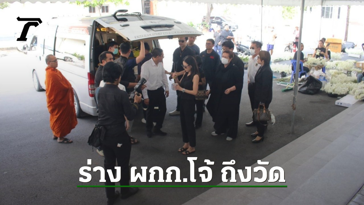 ร่างของอดีต "ผู้กำกับโจ้" เคลื่อนถึงวัดพระศรีฯ เพื่อทำพิธีรดน้ำศพ ญาตินำเครื่องแบบตำรวจสวมหุ่นตั้งในงาน