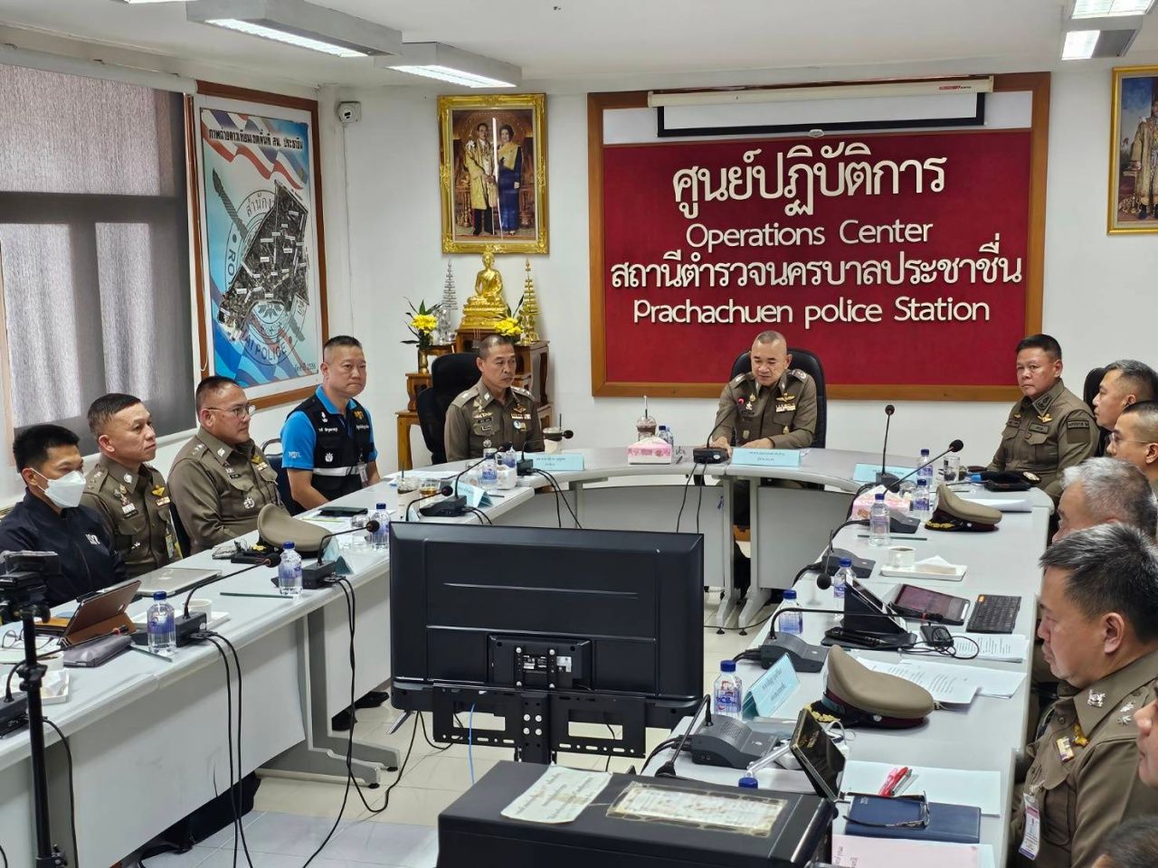 ความคืบหน้าด้านคดีที่ห้องประชุมชั้น 3 สน.ประชาชื่น เมื่อเวลา 13.30 น. วันที่ 11 มีนาคม 2568 พล.ต.ท.สมประสงค์ เย็นท่วม ผู้ช่วย ผบ.ตร. พล.ต.ท.สยาม บุญสม ผบช.น. พล.ต.ต.เจษฎา สวยสม ผบก.น.2 พ.ต.อ.ธิติพงศ์ ภิวัฒน์วุฒิกุล รอง ผบก.น.2 พ.ต.อ.สัญญา อุบลวิรัตนา ผกก.สน.ประชาชื่น พ.ต.ท.ณัฐพล รัตน์สุภาพงศ์ สว.(สอบสวน)สน.ประชาชื่น เจ้าของคดี ร่วมประชุมกับ พล.ต.ต.วาที อัศววุฒมางกุร ผบก.พฐก. เจ้าหน้าที่กองพิสูจน์หลักฐาน แพทย์สถาบันนิติเวชฯ รพ.ตำรวจ เพื่อติดตามความคืบหน้าและคลี่คลายคดีผู้กำกับโจ้เสียชีวิตอย่างมีเงื่อนงำ