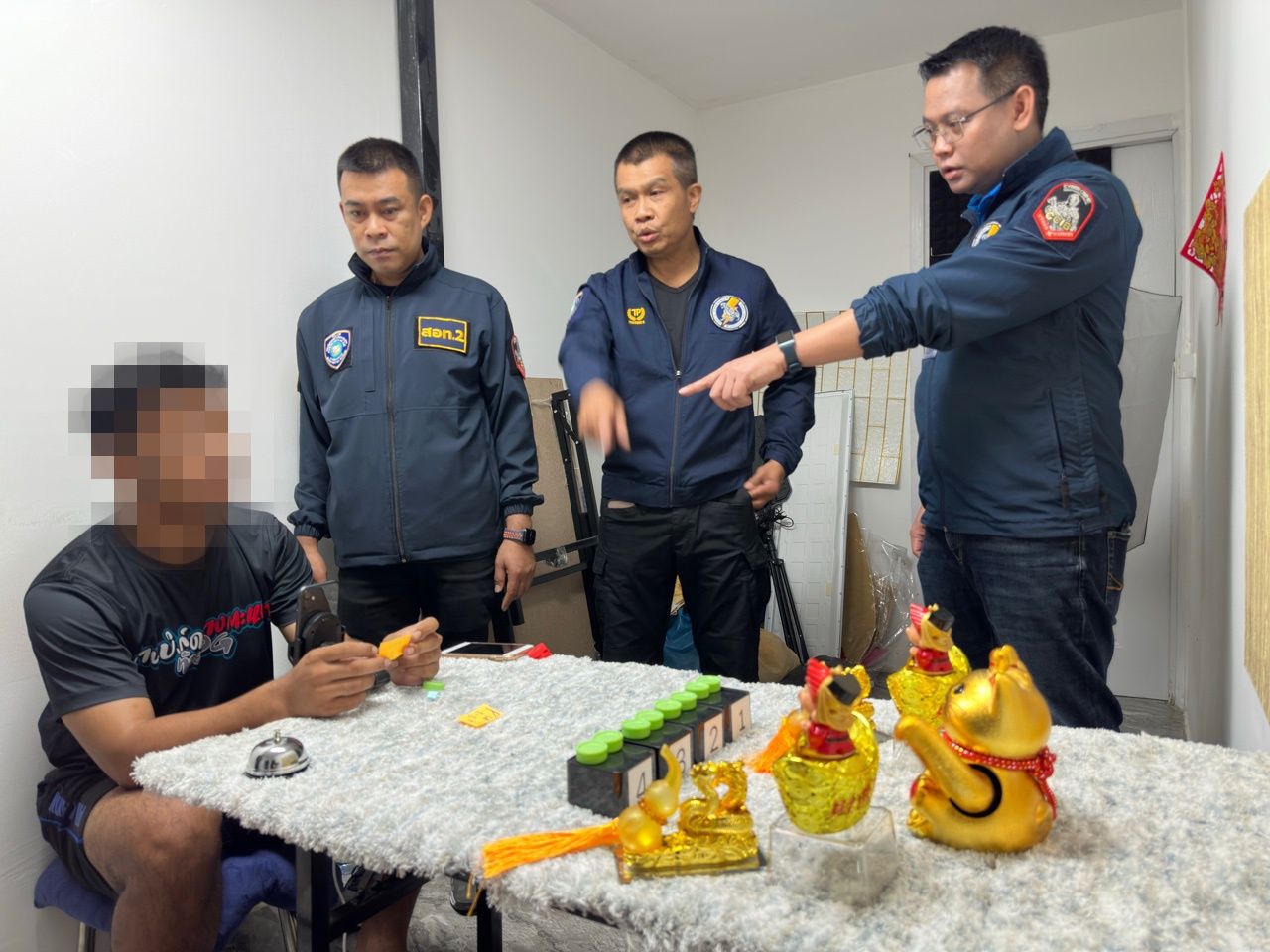 โดยตำรวจชุดสืบสวน กก.4 บก.สอท.2 ตรวจพบเฟซบุ๊กชื่อ "จับไข่ลุ้นโชค family egg" มีการโฆษณาชักชวนให้บุคคลทั่วไปเล่นพนันเอาทรัพย์สิน โดยมีการไลฟ์สดจัดให้มีการพนันออนไลน์เสี่ยงโชค มีรูปแบบวิธีการเล่นในลักษณะทายเบอร์ 1-4 เพื่อเอาเงินรางวัลเริ่มตั้งแต่ 10,000 บาท 30,000 บาท และ 60,000 บาท โดยให้ผู้เล่นโอนเงินเข้าเล่นครั้งละ 1,000 บาท เพื่อเข้าเล่นพนันออนไลน์ผ่านระบบบัญชีธนาคารในประเทศ แจ้งถอนเงินผ่านระบบออนไลน์โดยตรง มีแอดมินคอยแนะนำการเล่นและช่วยเหลือ เช่น กรณีปัญหาเกี่ยวกับการสมัคร การทำธุรกรรมทางการเงิน การให้คำแนะนำเชิญชวนให้เล่นการพนันออนไลน์ดังกล่าว