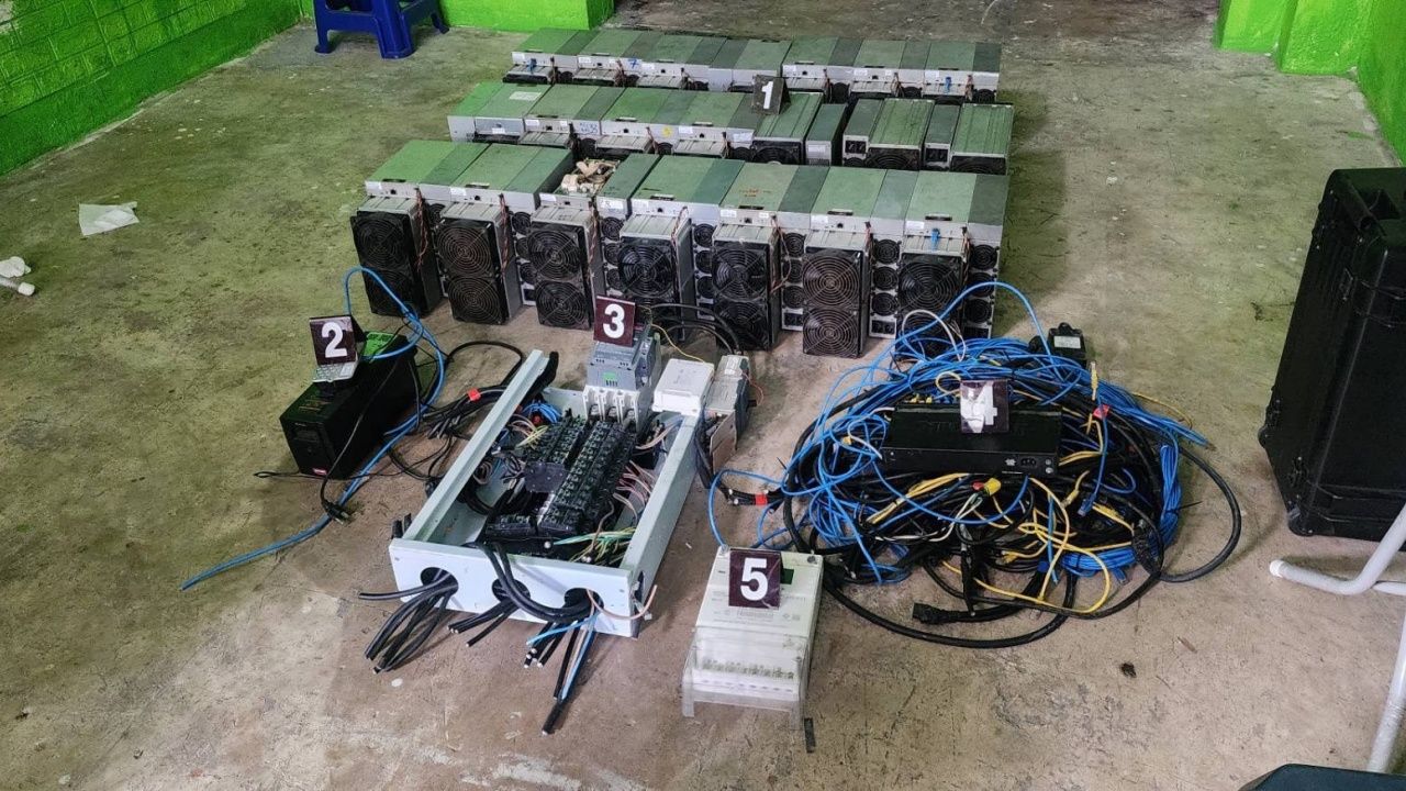 จากการตรวจค้น สามารถตรวจยึดเครื่องขุดบิทคอยน์ 63 เครื่อง เครื่องควบคุมเครื่องขุดบิทคอยน์ 3 เครื่อง แผงวงจรไฟฟ้าขนาดใหญ่ 3 เครื่อง เราท์เตอร์ 3 เครื่อง อุปกรณ์กระจายสัญญาณ HUB 3 เครื่อง มิเตอร์ไฟฟ้าดัดแปลง 3 เครื่อง คอมพิวเตอร์ตั้งโต๊ะ 1 เครื่อง โทรศัพท์มือถือ 1 เครื่อง คอมพิวเตอร์โน้ตบุ๊ก 1 เครื่อง สมุดบัญชีธนาคาร 2 เล่ม