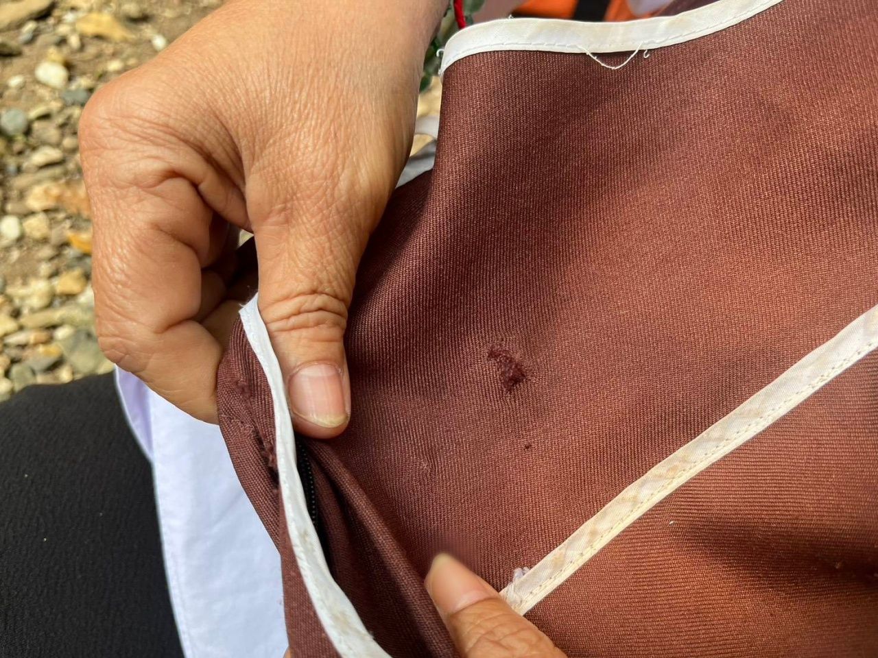 นางเล็ก เล่าให้ฟังว่า ขณะกำลังกวาดเศษใบไม้อยู่ มีชายลักษณะสูงสวมเสื้อกางเกง สวมหมวกไอ้โม่งสีดำปิดบังใบหน้าเข้ามาประชิดตัวด้านหลัง ใช้มีดจี้ที่หลังพร้อมกับพูดสำเนียงไม่ชัดว่าเอาเงินมา เอาเงินมาไม่งั้นจะแทงให้ตาย ตนขัดขืนยื้อแย่งมีดกับคนร้าย เป็นจังหวะที่คนร้ายล้วงเอาเงินในกระเป๋าผ้ากันเปื้อนไปประมาณ 1,000 กว่าบาท และใช้มีดแทง จึงร้องให้คนช่วย คนร้ายจึงได้ผลักจนล้มทิ้งมีดแล้ววิ่งหลบหนีไป
