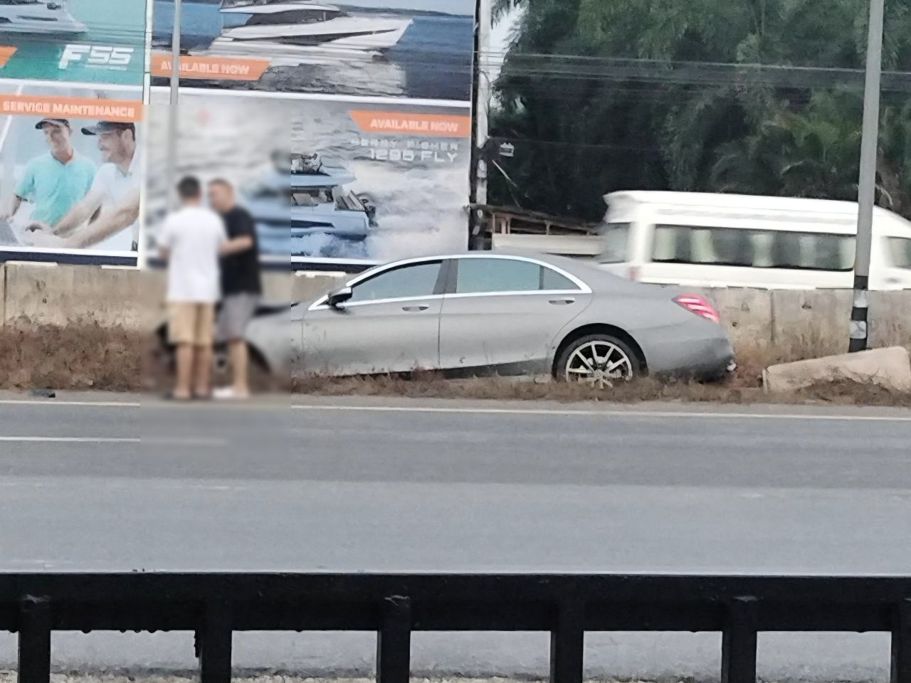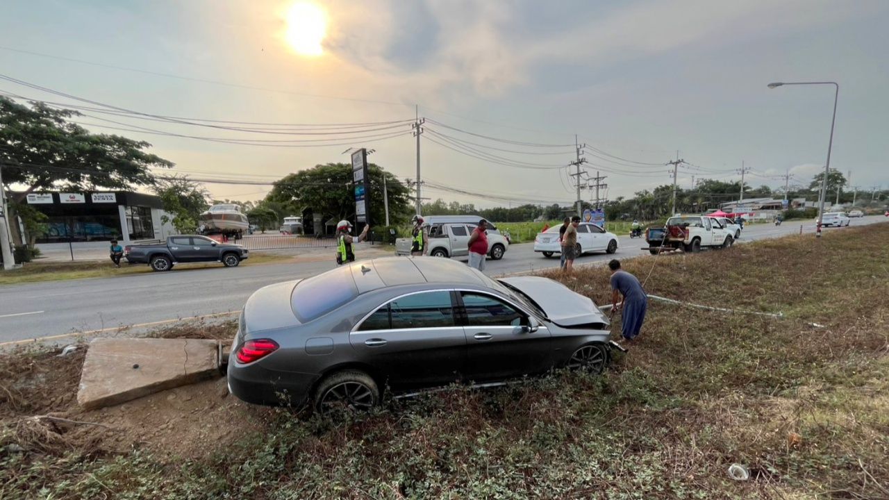 ชลบุรี ตำรวจ สภ.นาจอมเทียน เร่งตามตัว 2 ชาวจีน ซิ่งเบนซ์หรูป้ายประมูลฝ่าไฟแดง เสียหลักพุ่งชนเสาไฟส่องสว่างเกาะกลาง ทิ้งรถล่องหน ชาวบ้านเห็นเหตุการณ์ยังงงจะหนีทำไม