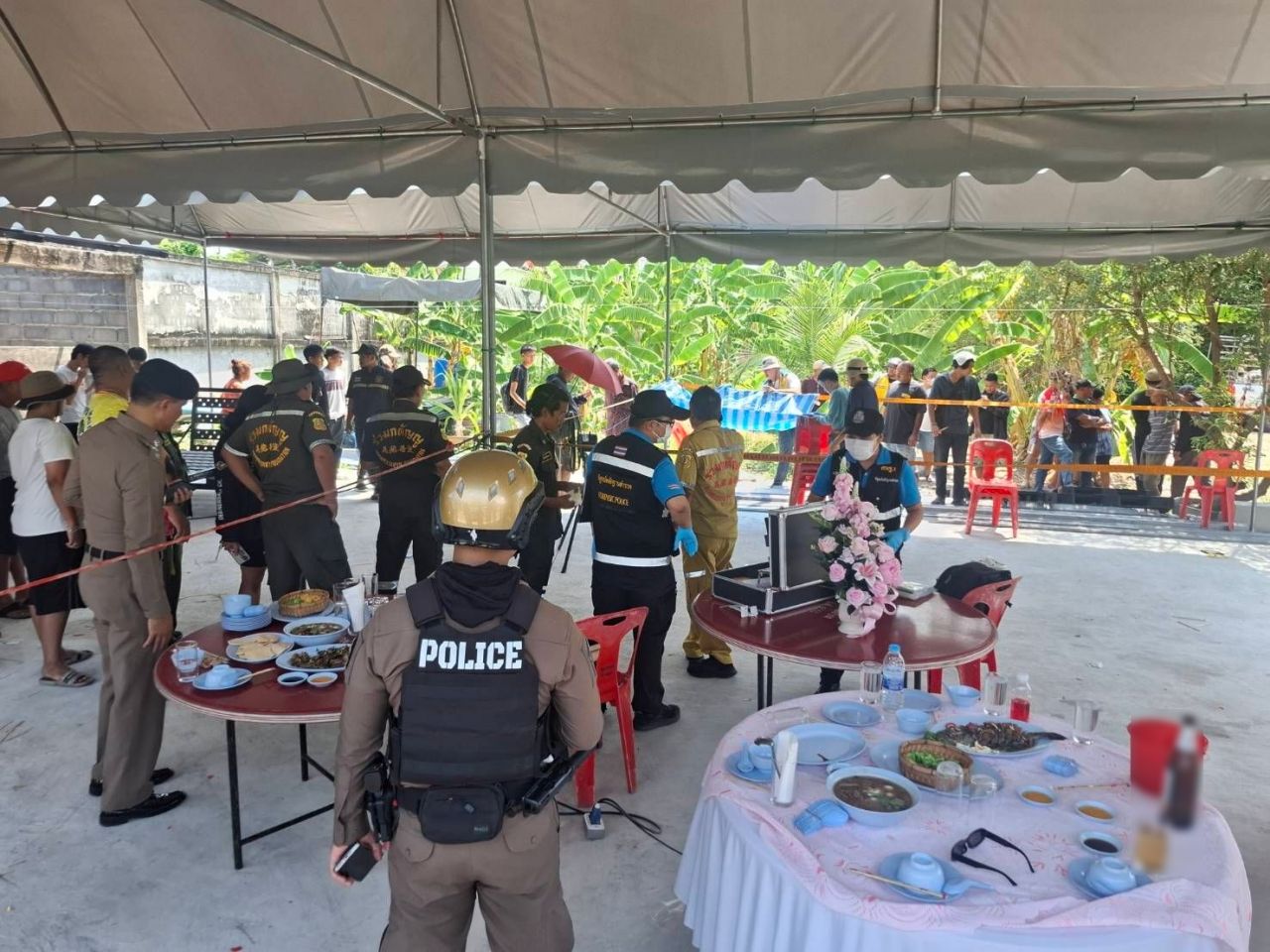 เจ้าหน้าที่ตำรวจตรวจสอบที่เกิดเหตุ พบร่องรอยคราบเลือดบริเวณในเต็นท์โต๊ะจีน พบปลอกกระสุนกระจายอยู่บริเวณที่เกิดเหตุประมาณกว่า 10 ปลอก ตำรวจจึงปิดกั้นพื้นที่เพื่อให้เจ้าหน้าที่กองพิสูจน์หลักฐานมาตรวจสอบที่เกิดเหตุอีกครั้ง ส่วนผู้ก่อเหตุทั้งสองคนทางตำรวจทราบตัวแล้ว อยู่ระหว่างติดตามตัวมาดำเนินคดี