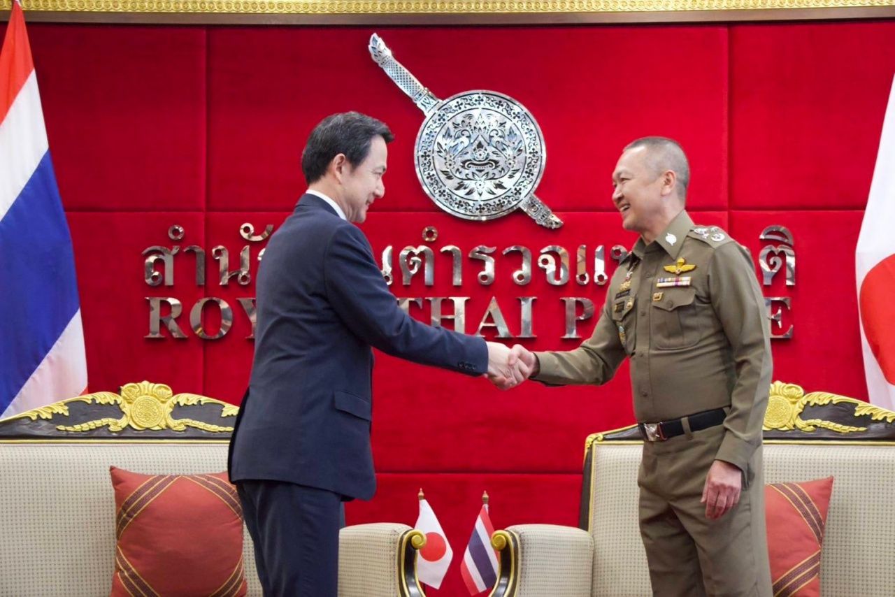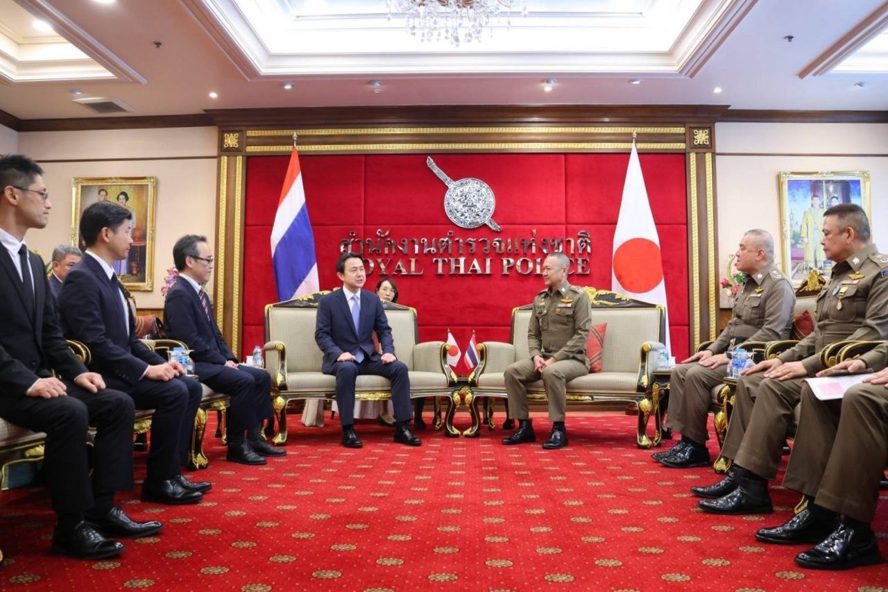 วันที่ 28 เมษายน 2568 เวลา 13.30 น. พล.ต.อ.ธัชชัย ปิตะนีละบุตร จเรตำรวจแห่งชาติ ให้การต้อนรับ นายเอกุจิ อาริชิกะ อธิบดีกรมปราบปรามองค์กรอาชญากรรม สำนักงานตำรวจแห่งชาติญี่ปุ่นและคณะ ประกอบด้วย นายเรียว ยาสึเอดะ ผู้บัญชาการสืบสวนระหว่างประเทศ กรมปราบปรามอาชญากรรมองค์กร/หัวหน้าตำรวจสากลโตเกียว (NCB TOKYO), นายเทรุซาโตะ อิโนะอุเอ ผู้กำกับการกองปราบปรามอาชญากรรม, นายอาริกะ คิตาโมโตะ ผู้กำกับการกองปฏิบัติการสืบสวนสอบสวนระหว่างประเทศ, นายนาโอโตะ วาตานาเบะ เลขานุการเอกและผู้ช่วยทูตตำรวจอาวุโสฯ, นายโยชิโนริ นาราซากิ เลขานุการโทและผู้ช่วยทูตตำรวจฯ, นางสาวแพรวพฤกษ์ จิตสกุลชัยเดช เจ้าหน้าที่ประสานงานและล่ามไทย-ญี่ปุ่น และ นายพิสิฏฐ์ ไม้ประเสริฐ ผู้ช่วยกงสุล ประจำสถานเอกอัครราชทูตญี่ปุ่น โดยมี พล.ต.ท.อิทธิพล อิทธิสารรณชัย ผู้ช่วยผู้บัญชาการตำรวจแห่งชาติ, พล.ต.ต.พงษ์สยาม มีขันทอง รองผู้บัญชาการตำรวจท่องเที่ยว, พล.ต.ต.วิวัฒน์ คำชำนาญ รองผู้บัญชาการตำรวจสืบสวนสอบสวนอาชญากรรมทางเทคโนโลยี, พล.ต.ต.ภานพ วรธนัชชากุล ผู้บังคับการสืบสวนสอบสวน สำนักงานตรวจคนเข้าเมือง และ พล.ต.ต.สุระพันธุ์ ไทยประเสริฐ ผู้บังคับการกองการต่างประเทศ ร่วมต้อนรับ ณ ห้องพรหมนอก ชั้น 2 อาคาร 1 สำนักงานตำรวจแห่งชาติ