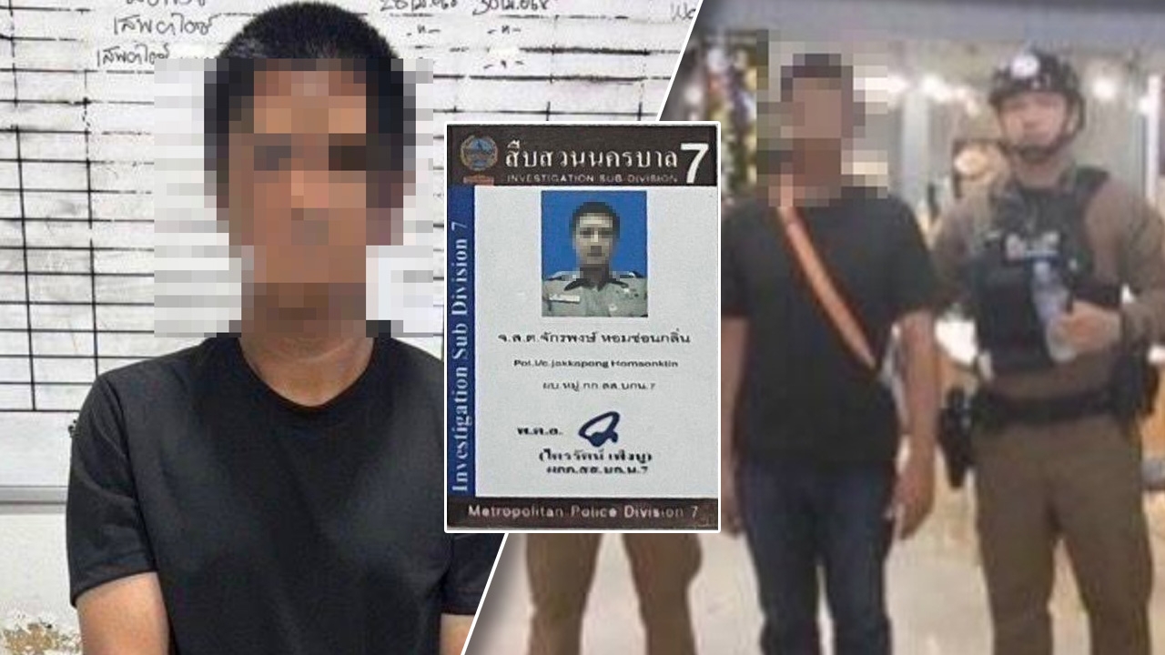 สายตรวจ สน.วัดพระยาไกร รวบตำรวจเก๊ อ้างเป็น จ.ส.ต.สืบ 7 - ตม. ตรวจค้นต่างด้าวย่านเอเชียทีคฯ รีดเงินค่าอาหาร 5,000 บาท อ้างทำบัตรขึ้นมาเอง พบประวัติเคยถูกจับคดีเสพยาเสพติด