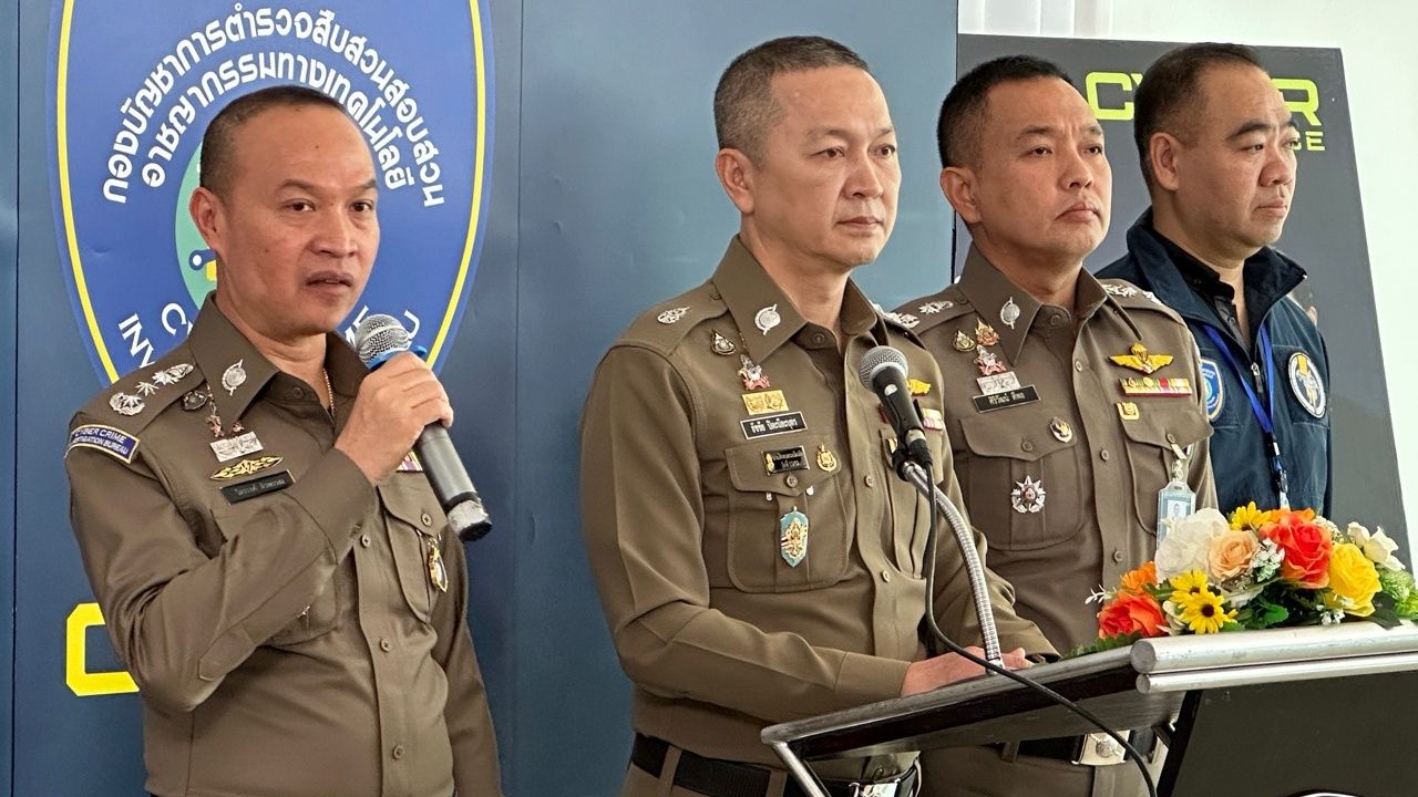เมื่อเวลา 09.30 น. วันที่ 9 พ.ค. 68 ที่กองบัญชาการตำรวจสืบสวนสอบสวนอาชญากรรมทางเทคโนโลยี (บช.สอท.) เมืองทองธานี อ.ปากเกร็ด จ.นนทบุรี พล.ต.อ.ธัชชัย ปิตะนีละบุตร จเรตำรวจแห่งชาติ ในฐานะหัวหน้าชุด ศปอส.ตร พล.ต.ท.ไตรรงค์ ผิวพรรณ ผบช.สอท. พล.ต.ต.วิวัฒน์ คำชำนาญ รอง ผบช.สอท., พล.ต.ต.ทินกร รังมาตย์ รอง ผบช.สอท. พล.ต.ต.ศิริวัฒน์ ดีพอ ผบก.สอท.1 พ.ต.อ.รุ่งเลิศ คันธจันทร์ ผกก.1 บก.สอท.1 ร่วมแถลงปฏิบัติการรวบแก๊งไทยเทา - แอฟริกันตะวันตกลวงข้ามชาติ หลอกบริษัทดังในญี่ปุ่นโอนเข้าไทยกว่า 228 ล้านบาท