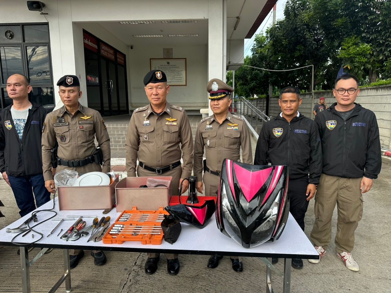 เมื่อเวลา 16.30 น. ของวันที่ 27 พฤษภาคม 2568 ที่ สภ.แสนภูดาษ พล.ต.ต.เกรียงไกร บุญซ้อน ผบก.ภ.จว.ฉะเชิงเทรา พร้อม พ.ต.อ.พรชัย กิตติชญาณ์ธร ผกก.สภ.แสนภูดาษ แถลงผลการจับกลุ่มแก๊งลักรถจักรยานยนต์ สืบเนื่องจากเมื่อวันที่ 17 พ.ค. 68 เวลาประมาณ 12.35 น. ชุดสืบสวน สภ.แสนภูดาษได้รับแจ้งว่ามีเหตุลักทรัพย์ (รถจักรยานยนต์ จำนวน 2 คัน) รถจักรยานยนต์ ฮอนด้า รุ่น เวฟ 125ไอ สีแดง-เทา ทะเบียน 1กย 4539 สระบุรี รถจักรยานยนต์ ยี่ห้อ ฮอนด้า รุ่น เวฟ 125ไอ สีแดง-เทา ทะเบียน 1กย 7183 ฉะเชิงเทรา บริเวณหอพักแห่งหนึ่งริมถนนสิริโสธร ต.แสนภูดาษ อ.บ้านโพธิ์ จ.ฉะเชิงเทรา ก่อนจะจัดชุดสืบสวนไล่ล่าติดตามตัวคนร้ายผู้ก่อเหตุดังกล่าว