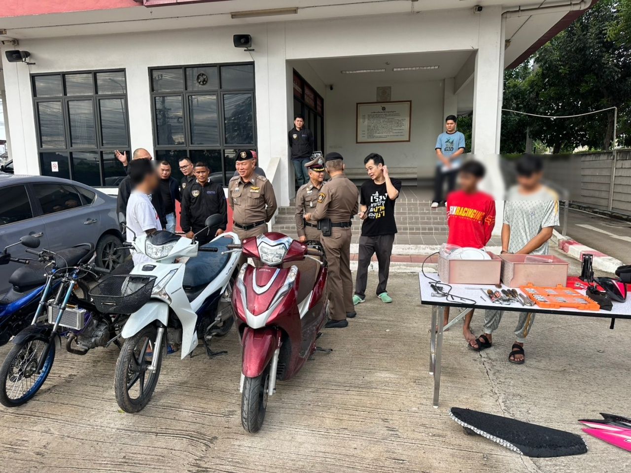 ฉะเชิงเทรา ตำรวจชุดสืบสวน สภ.แสนภูดาษ และสภ.บางน้ำเปรี้ยว ร่วมกันรวบตัว 2 หนุ่มไทยกับ 1 หนุ่มเมียนมา ตั้งแก๊งลักรถจักรยานยนต์โดยเช่าบ้าน เช่ารถเก๋งตระเวนก่อเหตุ พอเก็บเงินได้เยอะก็ไปเที่ยวพูลวิลล่า เงินหมดก็กลับมาก่อเหตุใหม่