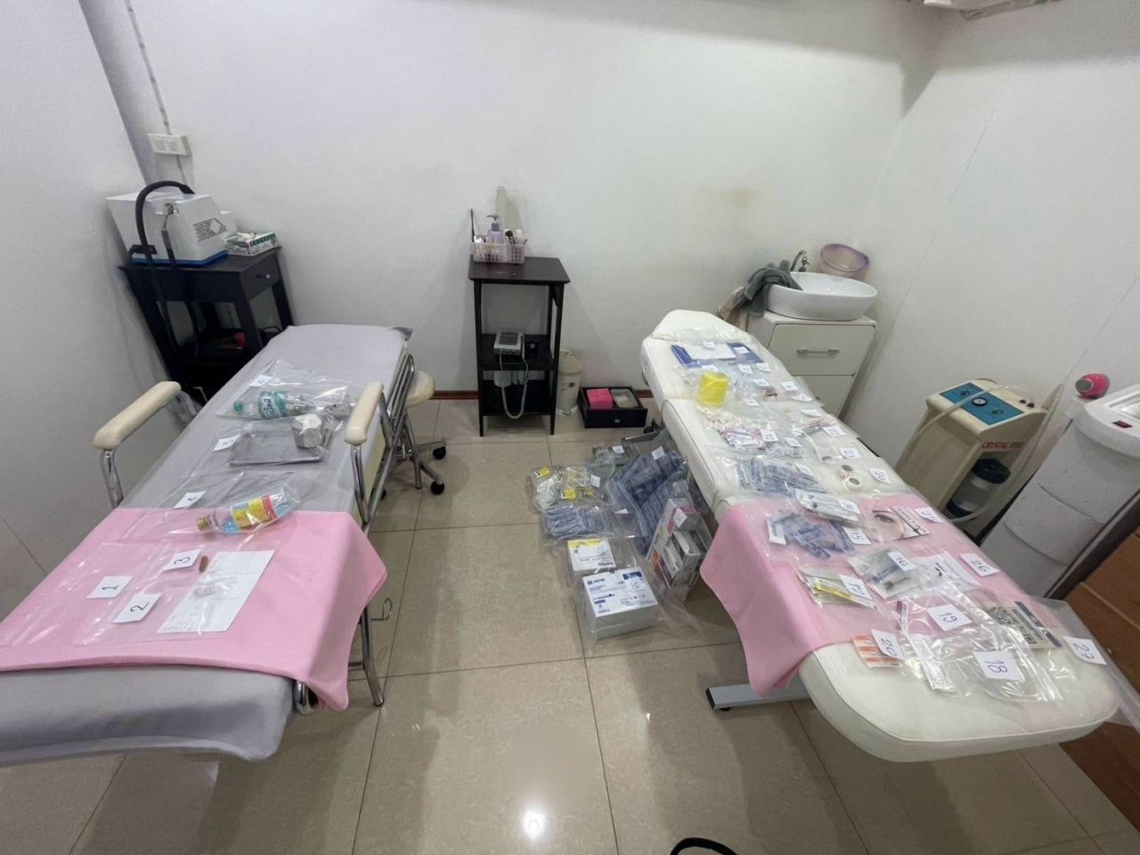 พล.ต.ต.พัฒนศักดิ์ กล่าวว่า สืบเนื่องจากเจ้าหน้าที่ได้รับเรื่องร้องเรียนให้ตรวจสอบบุคคลที่ไม่ใช่บุคลากรทางการแพทย์กระทำการรักษาโรค และฉีดเสริมความงามให้ประชาชนทั่วไป รวมถึงให้ตรวจสอบร้านขายยากลุ่มเสี่ยงที่มีพฤติการณ์ใช้พนักงานร้านยาที่ไม่ใช่เภสัชกร ขายยาให้กับประชาชนทั่วไปจึงลงพื้นที่ จ.ชลบุรี จ.นนทบุรี และ กทม. รวม 8 จุด จับแพทย์เถื่อน 8 ราย และเภสัชกรเถื่อน 3 ราย พร้อมตรวจยึดของกลาง เช่น ยาแผนปัจจุบัน ยาขึ้นทะเบียนตำรับ เครื่องสำอาง เครื่องมือแพทย์ รวม 176 รายการ