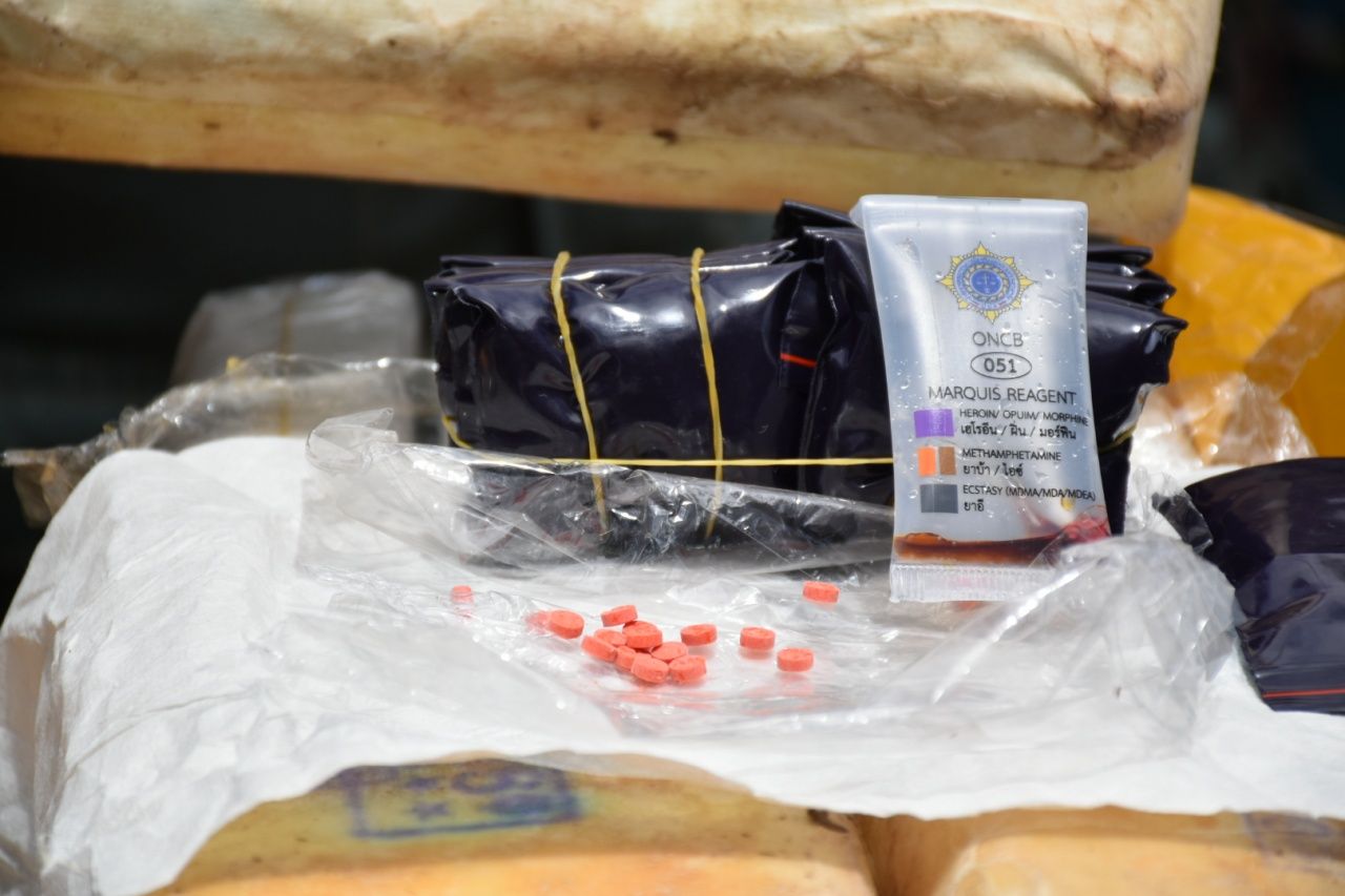 กระทั่งเมื่อเวลา 17.00 น. ตรวจพบกลุ่มบุคคลต้องสงสัย ประมาณ 10 ราย ลักษณะท่าทางมีพิรุธอยู่ในพื้นที่ดังกล่าว หน่วยจึงได้แสดงตัวเพื่อขอตรวจค้นแต่กลุ่มบุคคลดังกล่าวได้อาศัยความมืดและความชำนาญในพื้นที่วิ่งหลบหนีไป หน่วยจึงได้เข้าตรวจสอบพื้นที่โดยรอบ พบกระสอบดัดแปลงเป็นเป้สะพายหลัง จำนวน 15 กระสอบ ภายในบรรจุยาเสพติดให้โทษประเภท 1 (ยาบ้า) กระสอบละ 200,000 เม็ด จำนวน 8 กระสอบ รวมประมาณ 1,600,000 เม็ด และกระสอบละ 100,000 เม็ด จำนวน 7 กระสอบ รวมประมาณ 700,000 เม็ด รวมทั้งสิ้นจำนวน 2,300,000 เม็ด หน่วยจึงได้นำของกลางดังกล่าวไปเก็บไว้ที่กองร้อยตำรวจตระเวนชายแดนที่ 335