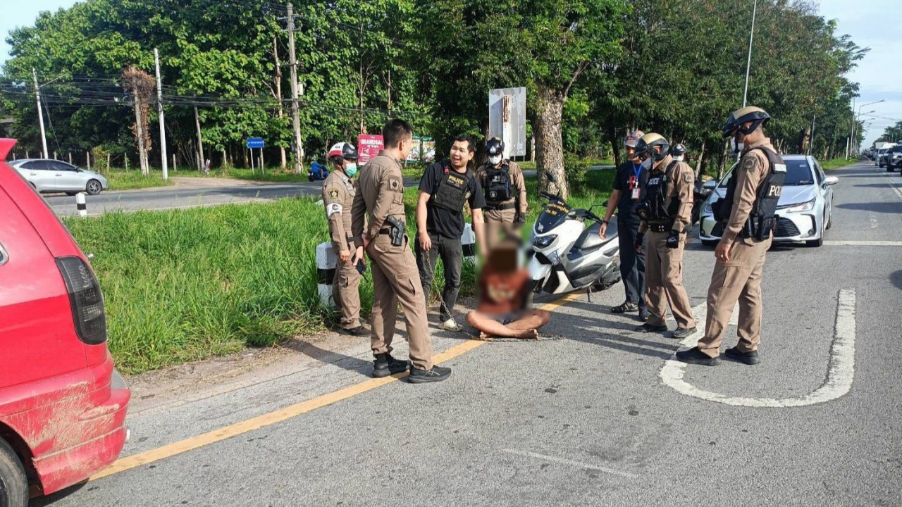 เมื่อวันที่ 10 มิถุนายน 2568 พ.ต.อ.วีณวัฒน์ ศรีแย้ม ผกก.สภ.โพธิ์กลาง อ.เมือง จ.นครราชสีมา รับแจ้งเหตุจากพลเมืองดี พบชายลักษณะต้องสงสัยถูกล่ามโซ่ตรวนที่ข้อเท้าขับรถเก๋งสีแดง ยี่ห้อเชฟโรเลต เลขทะเบียน งษ 5873 นครราชสีมา จอดรอสัญญาณไฟจราจรบริเวณสี่แยกทางเข้ากองบิน 1 บนทางหลวงหมายเลข 304 ถ.ราชสีมา-ปักธงชัย ด้านขาออกเมือง จึงรุดไปตรวจสอบพร้อมกำลัง สามารถควบคุมตัวด้วยยุทธวิธีโดยไม่มีการขัดขืนแต่อย่างใด