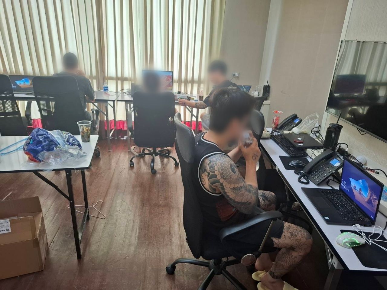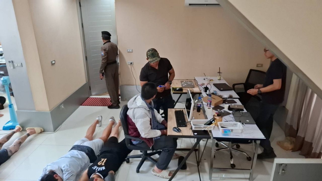 พอตำรวจมาถึง ปรากฏว่าพบกลุ่มชาวเกาหลีใต้กำลังนั่งเรียงรายทำงานอยู่หน้าโต๊ะคอมพิวเตอร์ พอเห็นตำรวจก็พากันแยกย้ายวิ่งหนีตายไปคนละทิศทาง ซึ่งตำรวจก็ตามไปจับได้ทั้งหมด บางคนก็กระโดดหนีลงมาจากชั้น 2 จนได้รับบาดเจ็บ ซึ่งในขณะนี้ยืนยันแล้วว่าบุคคลที่ถูกควบคุมตัวได้ภายในบ้านมีทั้งสิ้น 21 คน เป็นผู้ชายทั้งหมด โดยแบ่งเป็นชาวเกาหลีใต้ 20 คน และคนจีน 1 คน