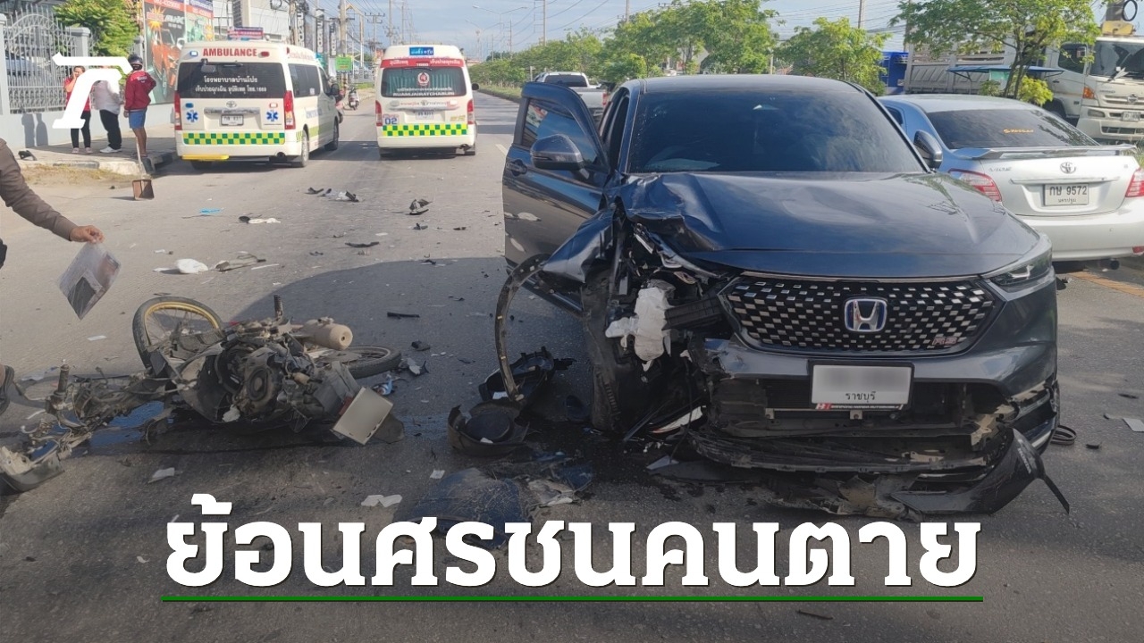 ตำรวจขับรถย้อนศร พุ่งชนรถจักรยานยนต์ หญิงวัย 64 ปี เจ็บสาหัสก่อนเสียชีวิต หน้าโชว์รูมรถถนนทรงพล จ.ราชบุรี อยู่ระหว่างรอผลตรวจปริมาณแอลกอฮอล์ในเลือด