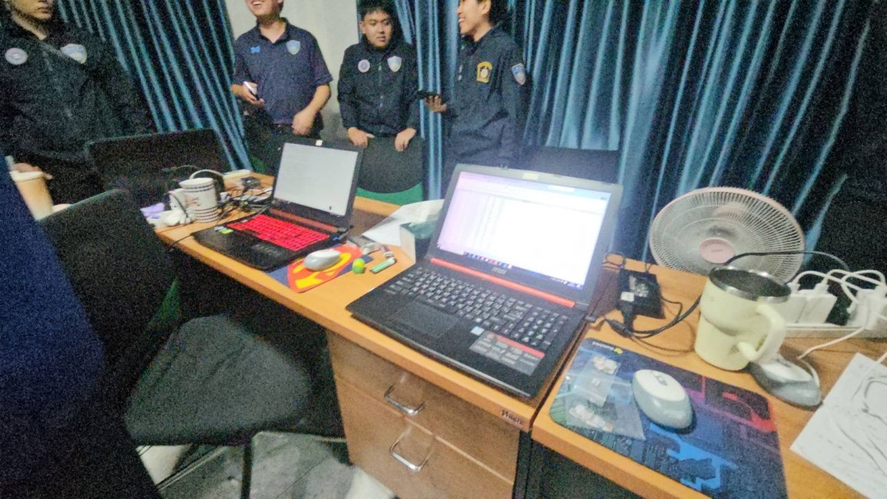 จากการตรวจค้นพบชาวจีน 14 ราย เป็นชาย 11 คน หญิง 3 คน คนชาวเมียนมา 3 คน เป็นชาย 1 คน หญิง 2 คน ขณะที่กำลังอยู่ภายในห้องพัก และทำงานหลอกลวงเหยื่อชาวจีนอยู่ ซึ่งการตรวจค้นครั้งนี้สามารถยึดของกลางคอมพิวเตอร์ 10 เครื่อง และโทรศัพท์มือถือ 26 เครื่อง