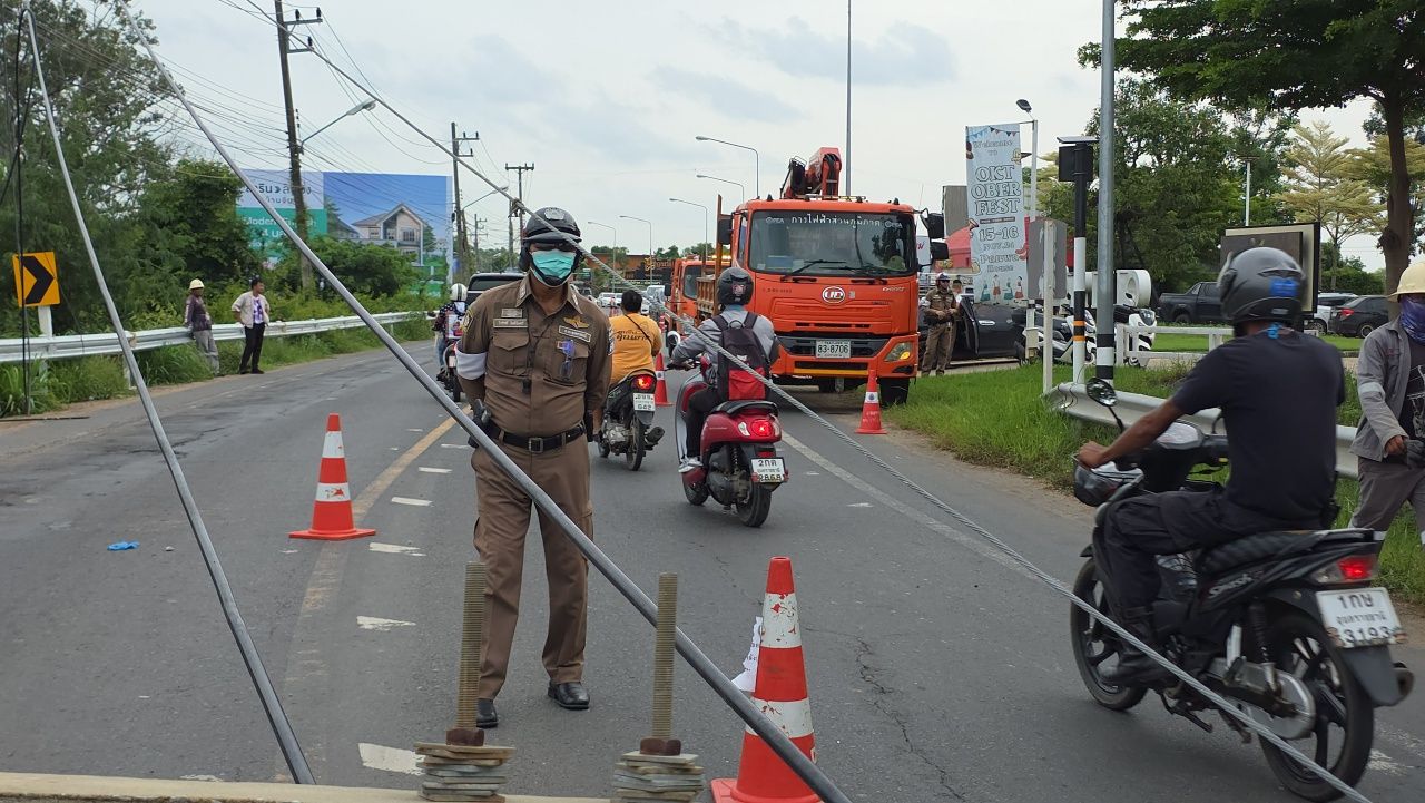 ที่เกิดเหตุเป็นทางโค้งลงจากสะพานข้ามแม่น้ำมูล มุ่งหน้าอำเภอวารินชำราบ พบเสาไฟฟ้าแรงสูงหักขวางถนน สายไฟแรงสูงขาดพาดบนถนน เจ้าหน้าที่การไฟฟ้าจึงได้เข้าตัดกระแสไฟ ใกล้กันพบรถกระบะมาสด้า สีเทา หมายเลขทะเบียน 2 กบ 9065 กรุงเทพฯ มีร่องรอยการเฉี่ยวชนบริเวณแก้มหน้าขวา กระจกมองข้างด้านขวา ฝากระโปรงหน้ารถมีรอยยางรถยนต์