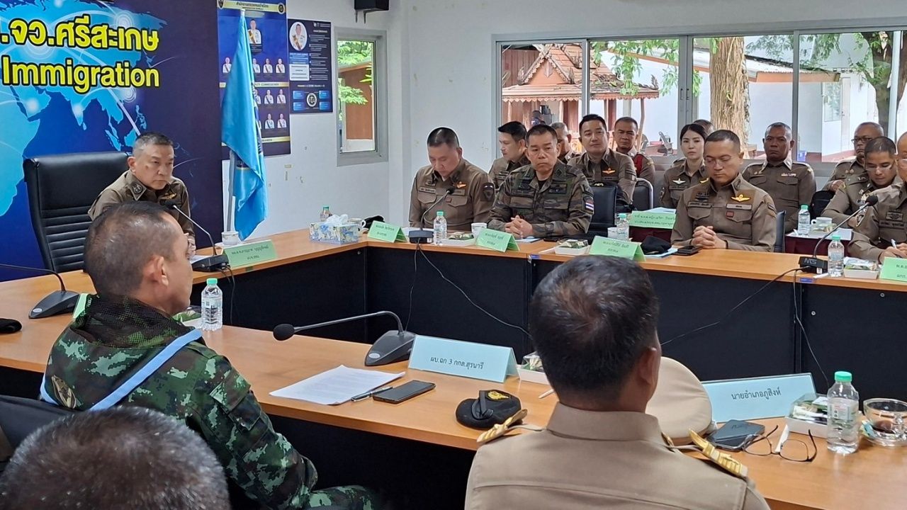 ในการนี้ พล.ต.ท.ภาณุมาศ บุญญลักษม์ ผู้บัญชาการสำนักงานตรวจคนเข้าเมือง ได้เข้าร่วมประชุมและรับฟังบรรยายสรุปสถานการณ์ชายแดนไทย-กัมพูชาในปัจจุบัน จาก พล.ต.ต.วริศร์สิริภ์ ลีละสิริ ผู้บังคับการตรวจคนเข้าเมือง 4 พร้อมทั้งมอบนโยบายในการปฏิบัติหน้าที่ให้แก่เจ้าหน้าที่ตำรวจในสังกัดตรวจคนเข้าเมือง จ.ศรีสะเกษ และตรวจคนเข้าเมือง จ.สุรินทร์ กองบังคับการตรวจคนเข้าเมือง 4 และกำชับให้เจ้าหน้าที่ดูแลความปลอดภัยและเข้มงวดในการปฏิบัติหน้าที่ เนื่องจากพื้นที่ภายใต้การดูแลของกองบังคับการตรวจคนเข้าเมือง 4 มีช่องทางธรรมชาติและช่องทางการค้าติดชายแดนกัมพูชาอยู่หลายแห่ง