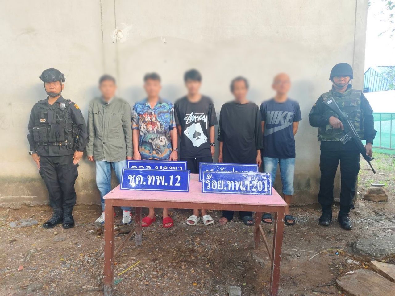 ประกอบด้วย 1.นายศักดิ์ชัย แซ่ตั้ง อายุ 59 ปี ชาวสมุทรปราการ, 2.นายมิ่งขวัญ รุ่งวัฒนโยธิน อายุ 56 ปี ชาว กทม. 3. นายดลชัย เกิดผล อายุ 57 ปี ชาวสุโขทัย 4.นายสวัสดิ์ ยะหัตตะ อายุ 62 ปี ชาว กทม. และ 5.นายยงยุทธ สุดชนะ อายุ 33 ปี ชาว อ.อรัญประเทศ จ.สระแก้ว ไม่มีหนังสือเดินทางหรือเอกสารอนุญาตข้ามแดนแต่อย่างใด จึงควบคุมตัวมาซักถามที่ กองร้อยทหารพรานที่ 1201 ด่านพรมแดนคลองลึก อ.อรัญประเทศ จ.สระแก้ว