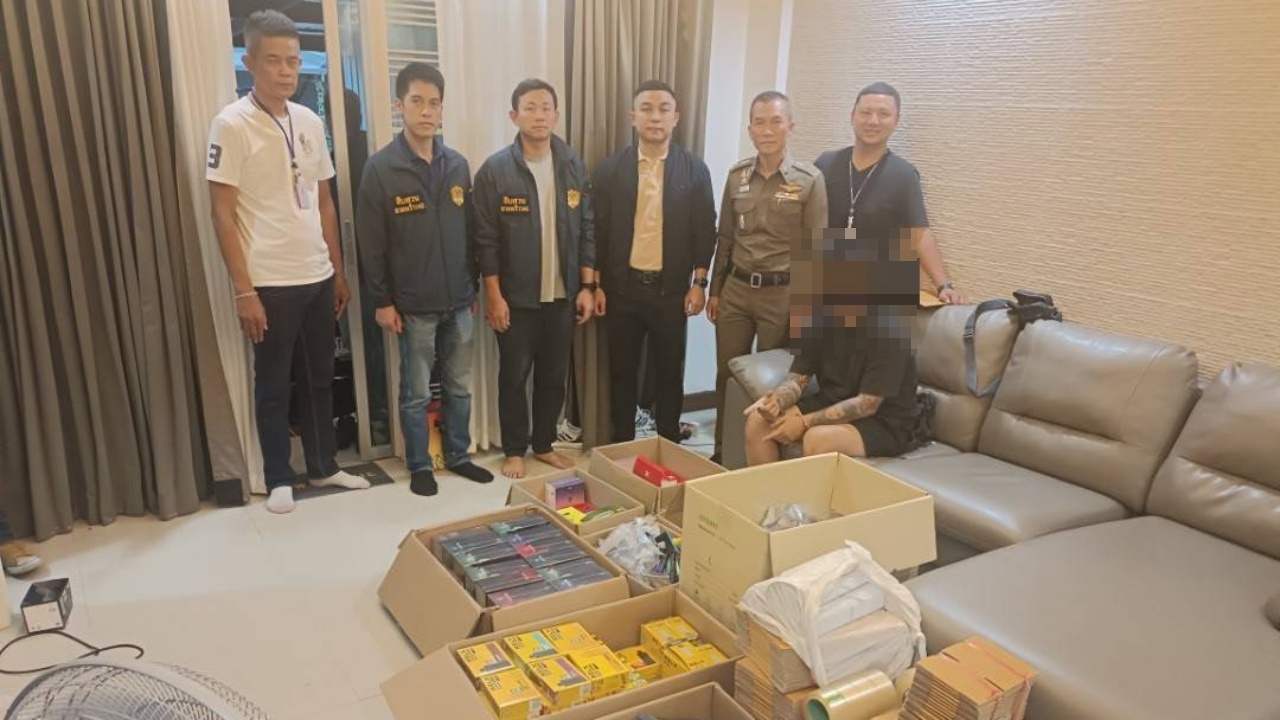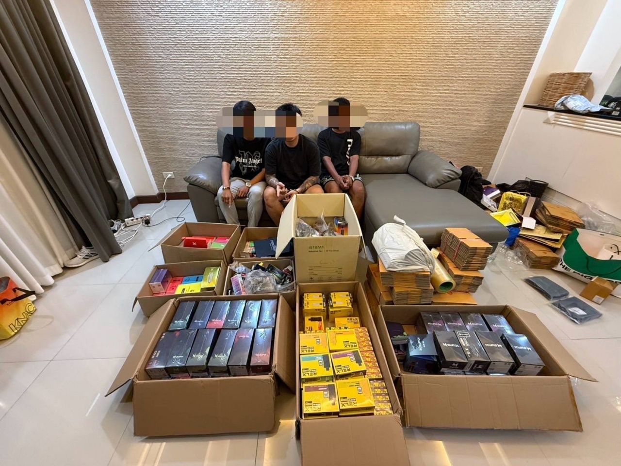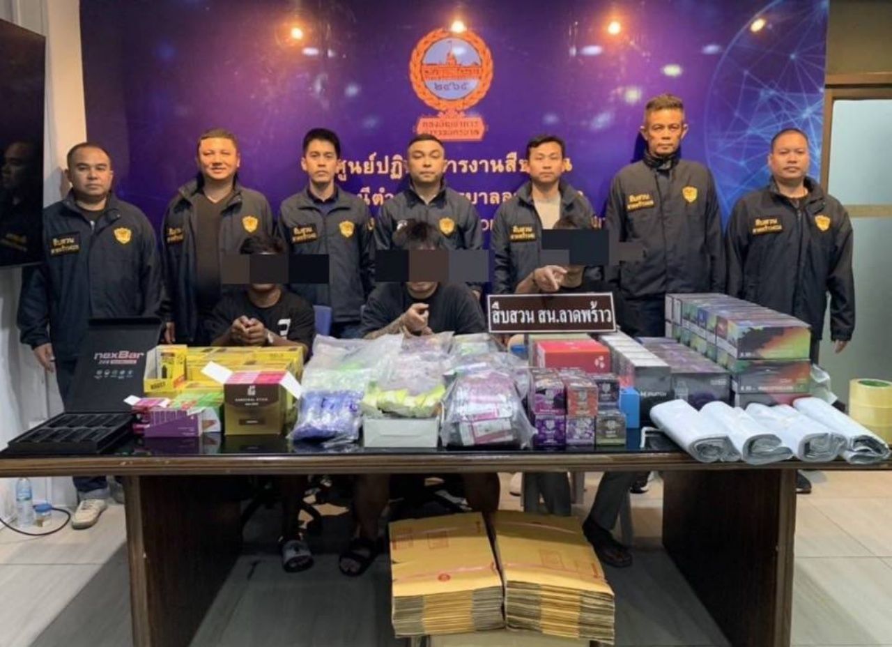 ตำรวจชุดสืบสวน สน.ลาดพร้าว บุกจับ 3 ผู้ต้องหา ลักลอบขายบุหรี่ไฟฟ้าออนไลน์ ยึดของกลางจำนวนมากที่บ้านหรู ซอยลาดพร้าว 101