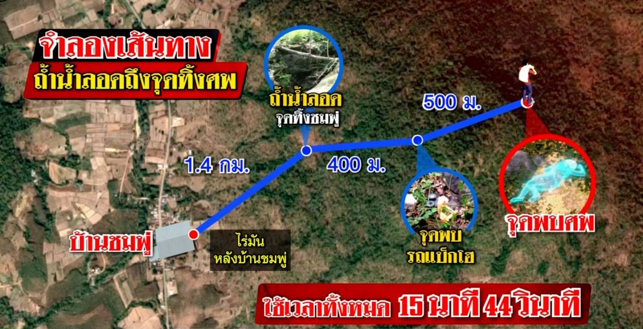กระทั่งเจ้าหน้าที่พบศพ น้องชมพู่ นอนเสียชีวิต ห่างจากจุดที่พบรองเท้าประมาณ 5 เมตร ห่างจากบ้านน้องชมพู่ประมาณ 2 กม. ตามลำตัวมีร่องรอยถูกหนามเกี่ยว กางเกงถูกถอดไว้ข้างก้อนหิน