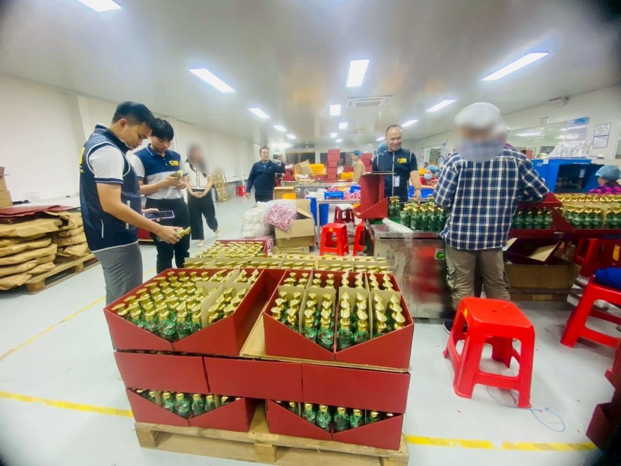 จากการเข้าทำการตรวจพบ น.ส.ปภาวี อายุ 24 ปี แสดงตัวเป็นผู้ดูแลสถานที่ขณะตรวจค้น พบการลักลอบผลิตเครื่องสำอางอยู่ด้วยการต้ม กวน และบรรจุลงขวดบรรจุภัณฑ์ ติดฉลาก เพื่อรอการส่งให้ลูกค้าตามออเดอร์ โดยส่วนใหญ่มักจะส่งออกขายต่างประเทศ พร้อมตรวจยึดและอายัดของกลาง เป็นผลิตภัณฑ์เครื่องสำอาง หลายรายการ เครื่องจักรผลิต และวัตถุดิบใช้ผลิตทั้งสิ้น จำนวนทั้งสิ้นกว่า 234,699 ชิ้น รวมทั้งเครื่องจักร ฉลาก บรรจุภัณฑ์ และวัตถุดิบในการผลิตรวมมูลค่ากว่า 20 ล้านบาท จึงตรวจยึดไว้เป็นของกลาง