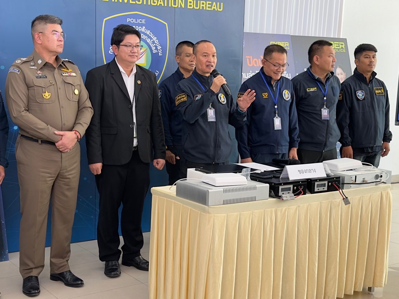 เมื่อเวลา 12.30 น. วันที่ 20 สิงหาคม 2568 ที่กองบัญชาการตำรวจสืบสวนสอบสวนอาชญากรรมทางเทคโนโลยี (บช.สอท.) เมืองทองธานี อ.ปากเกร็ด จ.นนทบุรี พล.ต.ท.ไตรรงค์ ผิวพรรณ ผบช.สอท. พล.ต.ต.ทินกร รังมาตย์ รอง ผบช.สอท. พล.ต.ต.ศิริวัฒน์ ดีพอ ผบก.สอท.1 พล.ต.ต.สุรพงษ์ ไทยประเสริฐ ผบก.อก.สอท. พ.ต.อ.ปรีดา คงจัด รอง ผบก.สอท.1 พ.ต.ท.เรืองกฤษณ์ ศิริมาจันทร์ รอง ผกก.2 บก.สอท.1 พ.ต.ท.ซูเกียรติ ชาตะรูปะ สว.กก.2 บก.สอท.1 นายวิสิษฐศักดิ์ เจริญไชย ผู้จัดการงานองค์กรสัมพันธ์ AIS ร่วมกันแถลงผลปฏิบัติการรวบหนุ่มเกาหลีเหนือเครือข่ายแก๊งคอลเซ็นเตอร์ ติดตั้งเครื่องจำลองสถานีฐาน (False Base Station) ขับตระเวนส่ง SMS ปลอมแนบลิงก์ดูดเงินกลางกรุง