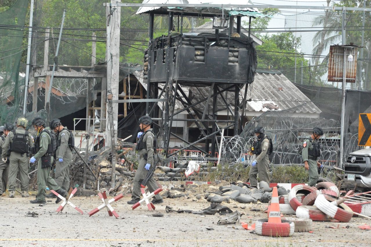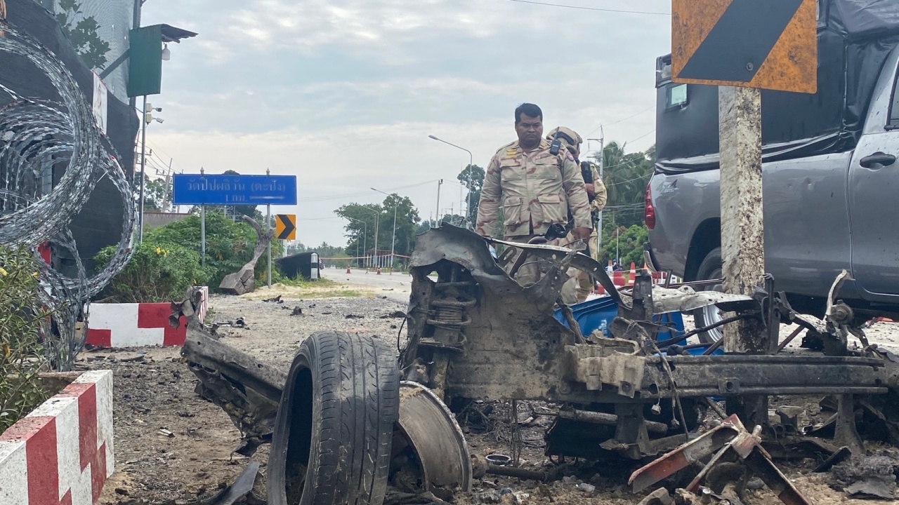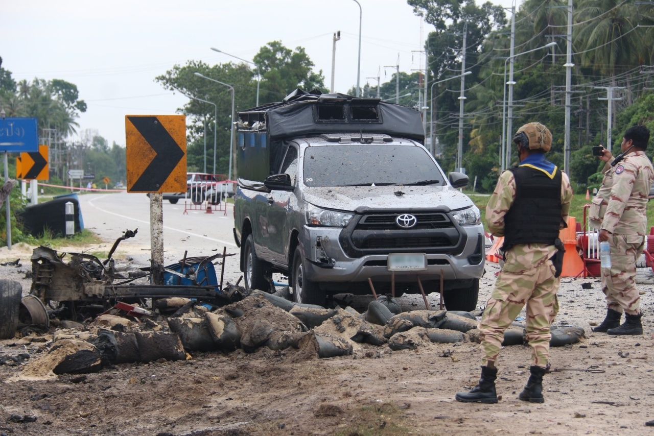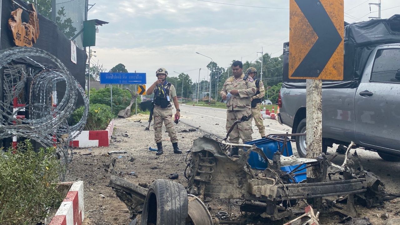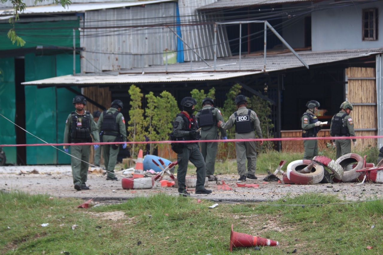 ความคืบหน้าเมื่อเวลา 07.00 น. วันที่ 21 สิงหาคม 2568 พ.ต.อ.ดิเรก โฉมยงค์ รอง ผบก.ภ.จว.นราธิวาส พร้อมเจ้าหน้าที่ชุดอีโอดี และเจ้าหน้าที่กองพิสูจน์หลักฐาน จ.นราธิวาส และเจ้าหน้าที่ที่เกี่ยวข้อง ได้เดินดูจุดเกิดเหตุที่สร้างความเสียหายต่อฐานปฏิบัติการ ซึ่งเป็นช่วงบริเวณหัวมุมด้านซ้ายมือ ซึ่งมีรถยนต์กระบะส่วนตัวของเจ้าหน้าที่ อส. ยี่ห้อโตโยต้า สีบรอนซ์ ทะเบียน บฉ 8597 นราธิวาส ได้รับความเสียหาย 1 คัน ซึ่งถูกสะเก็ดระเบิดที่บริเวณฝาท้ายของกระบะ
