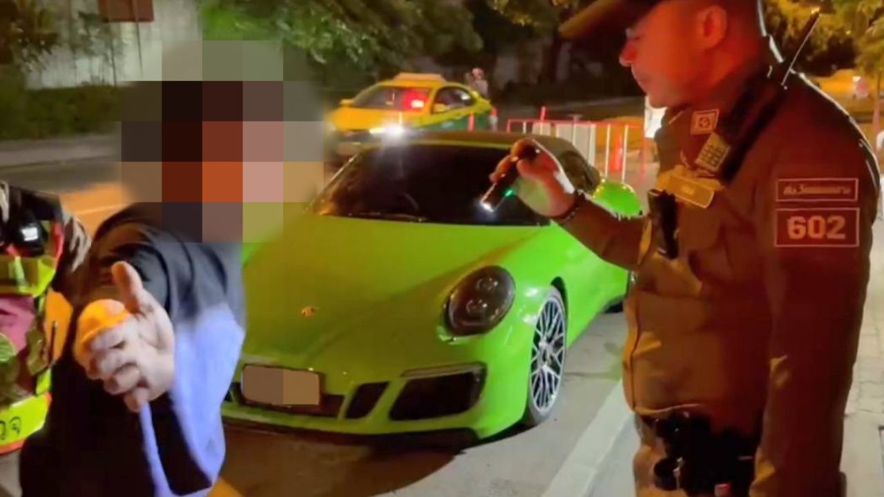 เมื่อเวลา 03.00 น. วันที่ 24 ส.ค. 68 ขณะที่ พ.ต.ท.เฉลิมพล ผาชะลา สว.จร.สน.วังทองหลาง พร้อมกำลังเจ้าหน้าที่ จร.สน.วังทองหลาง ตั้งจุดตรวจกวดขันวินัยจราจรและตรวจวัดแอลกอฮอล์ หน้าโชว์รูมรถมอเตอร์เวย์ ถนนประดิษฐ์มนูธรรมขาออก แขวงและเขตวังทองหลาง กทม. มีรถเก๋งพอร์ชสีเขียวคันหนึ่ง ขับเข้ามาที่ด่านตรวจ