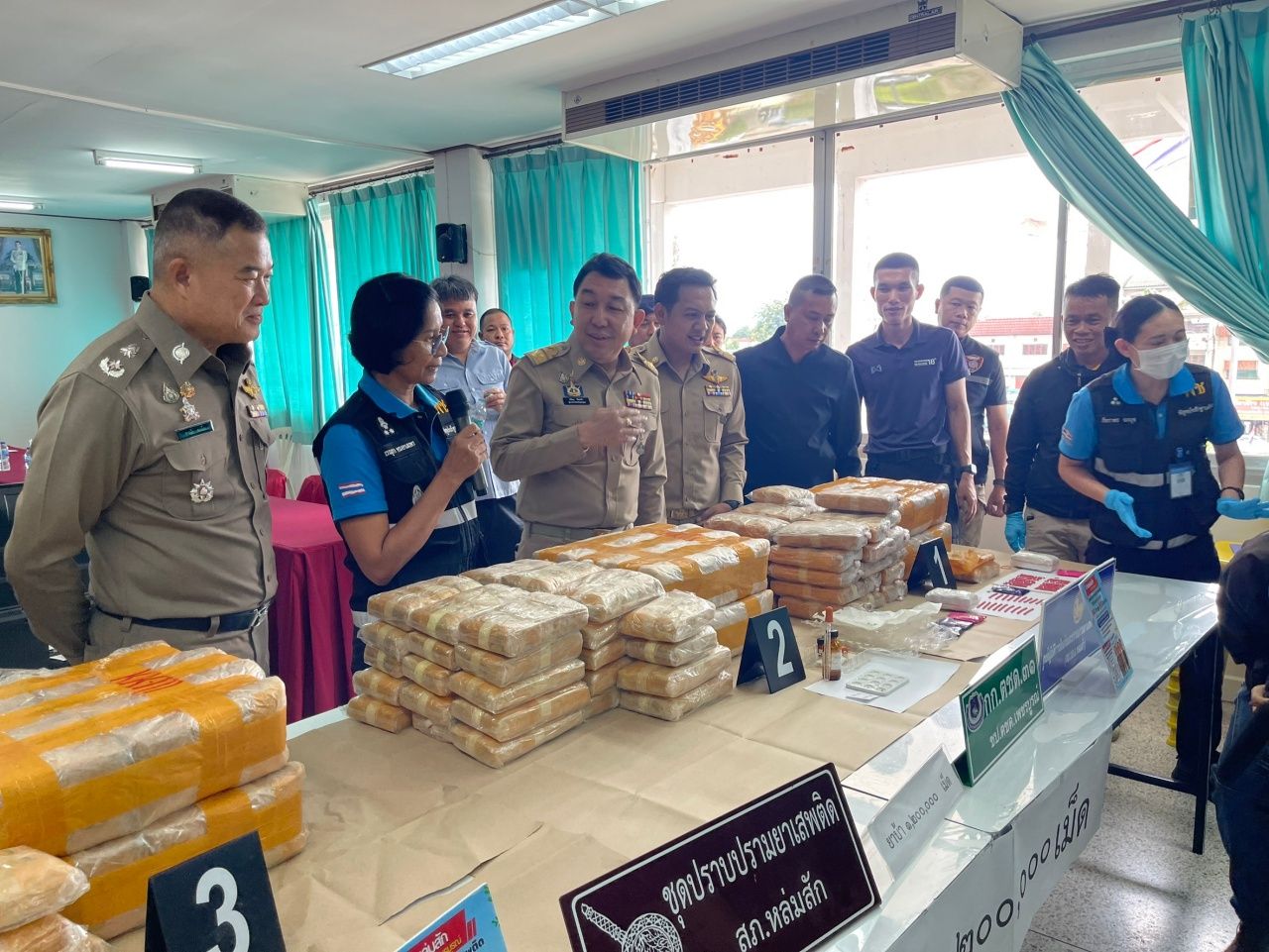 เจ้าหน้าที่ร่วมกันแถลงข่าวยึดยาบ้าบิ๊กล็อต 1.2 ล้านเม็ด มูลค่าขายปลีกกว่า 60 ล้านบาท หลังมีคนพบถุงกระสอบปริศนา 3 กระสอบวางในที่เปลี่ยว พร้อมเผยกลพ่อค้ายาเสพติดพัฒนารูปแบบการส่งมอบยาบ้าแยบยลมากขึ้น