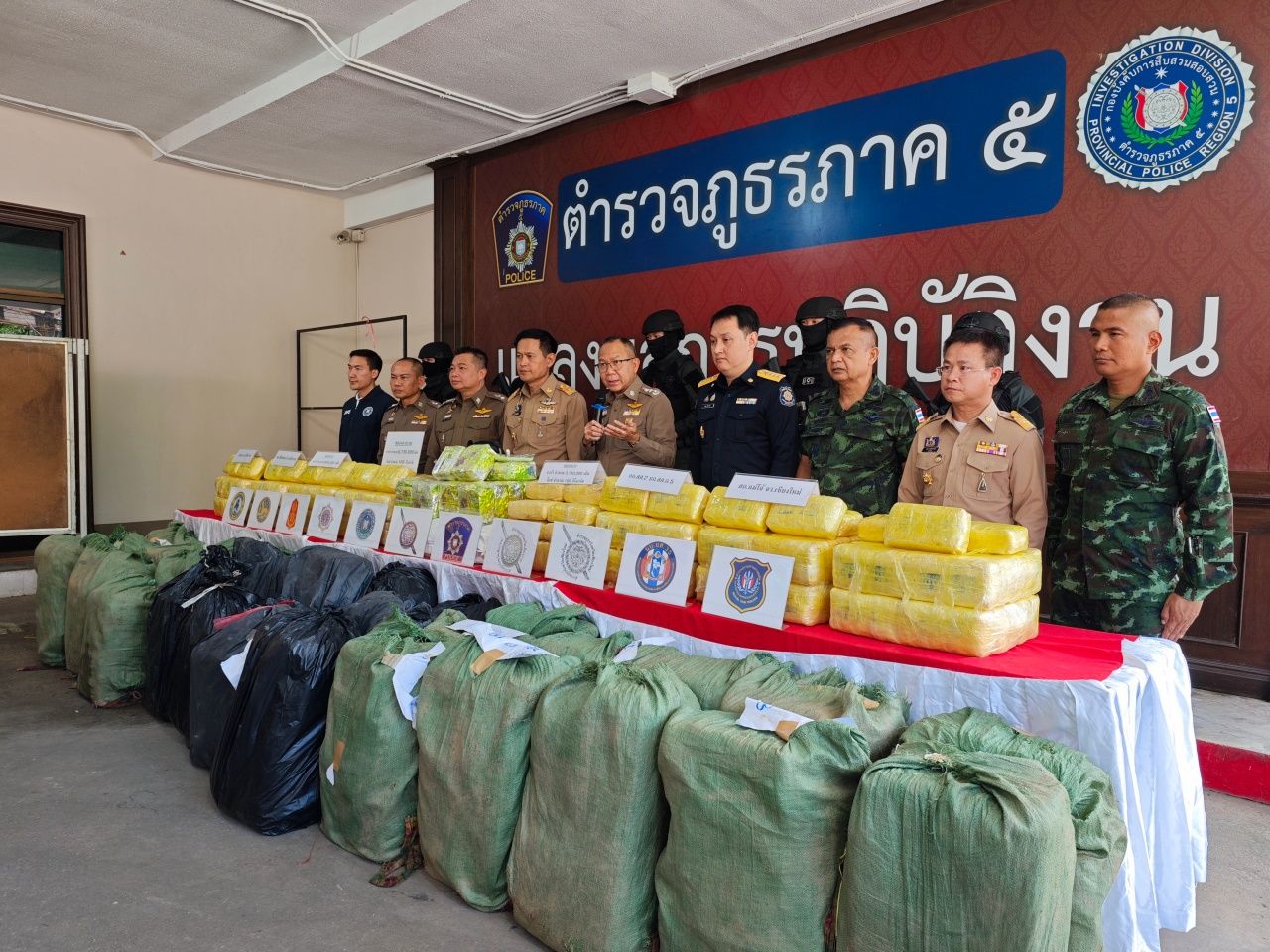 วันที่ 15 ก.ย. 68 นายทศพล เผื่อนอุดม ผู้ว่าราชการจังหวัดเชียงใหม่ พร้อมด้วย พล.ต.ท.กฤตธาพล ยี่สาคร ผู้บัญชาการตำรวจภูธรภาค 5 และตัวแทนจากสำนักงานป้องกันและปราบปรามยาเสพติดภาค 5 แถลงผลการจับกุม นายอนุสรณ์ มาสุข อายุ 24 ปี ชาว จ.ราชบุรี ขบวนการค้ายาเสพติดรายใหญ่ พร้อมของกลางยาบ้า 3,730,000 เม็ด และยาไอซ์ 100 กิโลกรัม พร้อมรถกระบะอีซูซุ สีเทา ทะเบียนนครราชสีมา ที่ใช้ขนยาเสพติด