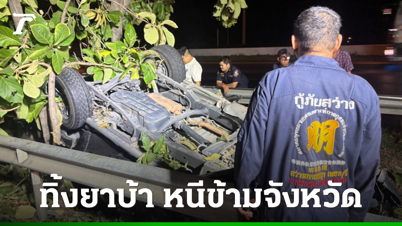 ตร.ไล่ล่า คนขับปาเจโร่ ทิ้งกระสอบยาบ้า 5 แสนเม็ด ข้างทาง ก่อนขับหลบหนีข้ามจังหวัดไปชนต้นไม้-พลิกคว่ำ คนขับสาหัส รอสอบปากคำ