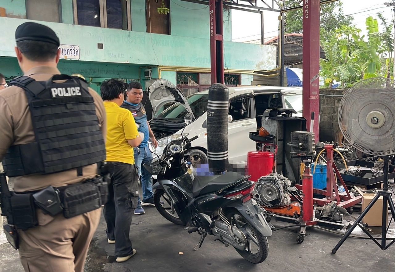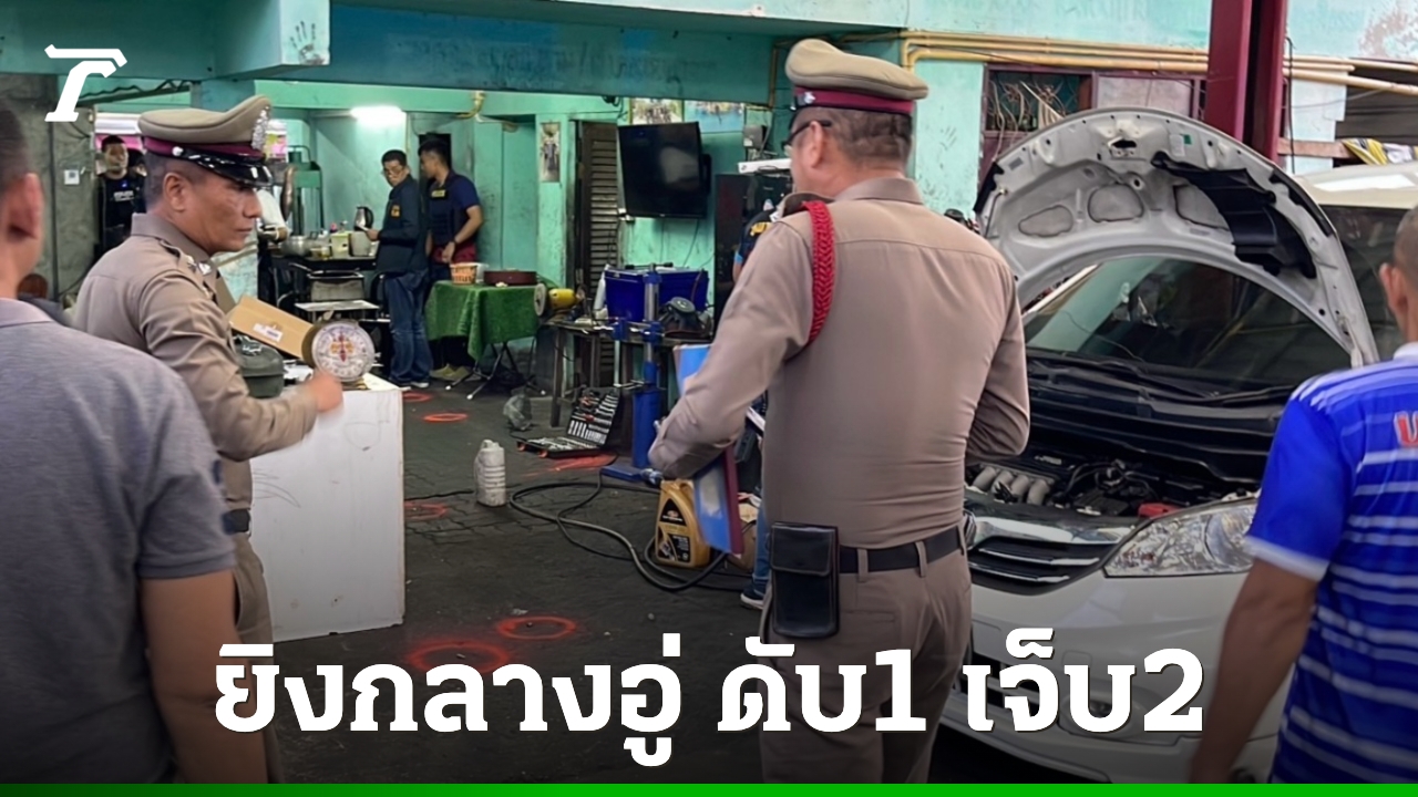 เจ้าหน้าที่เข้าตรวจสอบ เกิดเหตุยิงกันกลางอู่ซ่อมรถที่สมุทรปราการ ดับ 1 เจ็บ 2 ราย พบเคยมีคดีฟ้องร้องกันมาก่อน รอสอบปากคำหาสาเหตุ ดำเนินคดีตามกฎหมาย