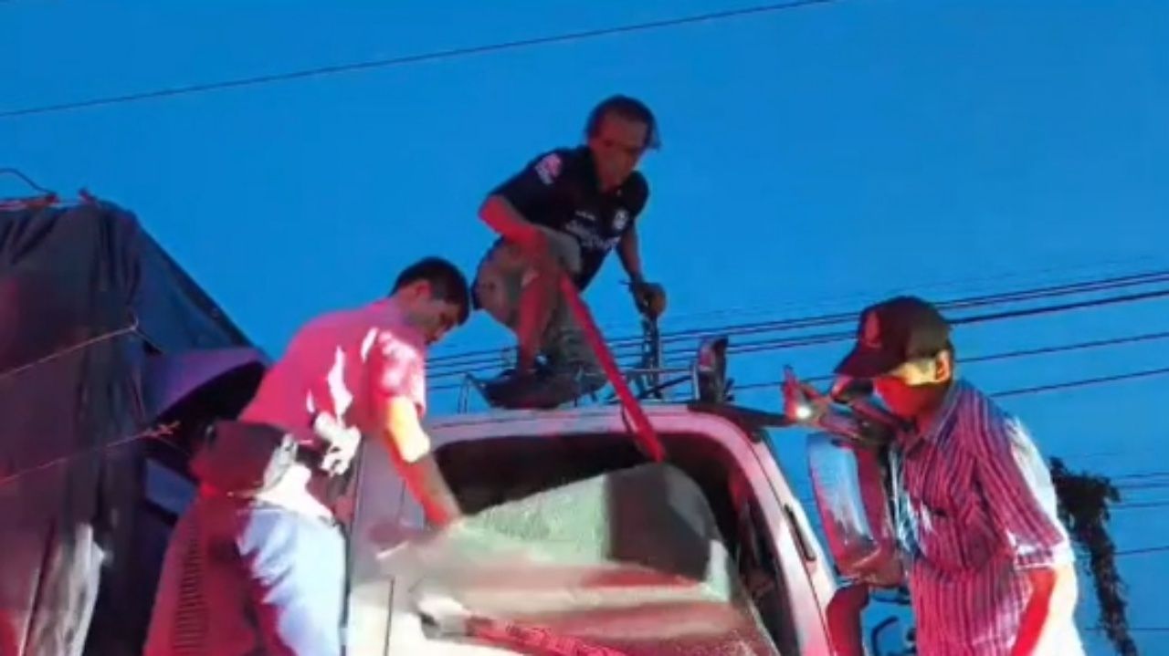โดยทางเจ้าหน้าที่ตำรวจใช้เวลาเกลี้ยกล่อมอยู่นานกว่า 2 ชั่วโมง จึงตัดสินใจงัดกระจกรถและเปิดประตู และควบคุมตัวคนขับรถพ่วง 18 ล้อไว้ได้ ทราบชื่อคือนายทรงพล มาป้อง อายุ 31 ปี ชาวจังหวัดชัยภูมิ