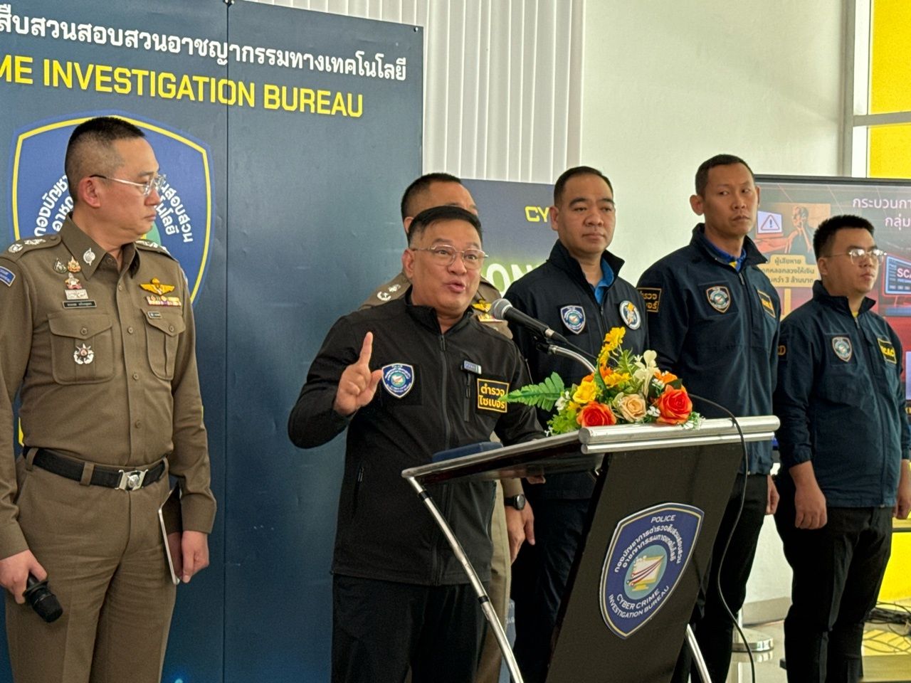 เมื่อเวลา 10.00 น. วันที่ 10 ตุลาคม 2568 ที่กองบัญชาการตำรวจสืบสวนสอบสวนอาชญากรรมทางเทคโนโลยี (บช.สอท.) เมืองทองธานี อ.ปากเกร็ด จ.นนทบุรี พล.ต.ท.สุรพล เปรมบุตร ผบช.สอท. พล.ต.ต.ชัชปัณกาณฑ์ คล้ายคลึง รอง ผบช.สอท. พล.ต.ต.ศิริวัฒน์ ดีพอ ผบก.สอท.1 พล.ต.ต.ศรายุทธ จุณณวัตต์ ผบก.สอท.2 พล.ต.ต.ทรงกลด เกริกกฤตยา ผบก.ตรวจสอบและวิเคราะห์อาชญากรรมทางเทคโนโลยี ร่วมแถลงผลการจับกุมหนุ่มเปิดกลุ่มลับดูคลิปโป๊แฝงโปรโมทโฆษณาเว็บพนันออนไลน์