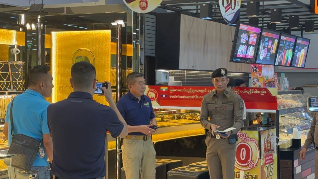 สมุทรปราการ เกิดเหตุคนร้ายบุกเดี่ยว ควงปืน ปาระเบิดปิงปองเบิกทาง ก่อนเข้าไปกวาดทองคำไป 12 เส้น หนัก 24 บาท ในห้างดังย่านบางเสาธง ก่อนขี่รถจยย. หลบหนี