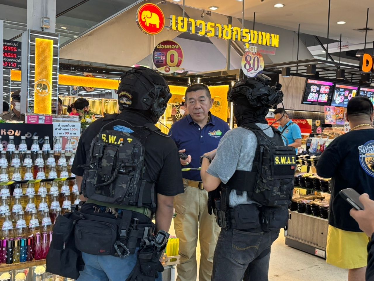 ด้าน พล.ต.ต.ภูมินทร์ สิงหสุต ผบก.ภ.จว.สมุทรปราการ ที่เดินทางมาตรวจที่เกิดเหตุ เผยว่า คนร้ายเป็นชาย 1 คน เข้ามาก่อเหตุชิงทรัพย์ร้านทอง โดยได้ทองไปประมาณ 12 เส้น เส้นละ 2 บาท รวม 24 บาท ก่อนหลบหนี โดยได้ส่งชุดสืบสวนลงพื้นที่ คาดว่าไม่นานจะได้ตัว ส่วนมาตรการป้องกันร้านทองภายในห้าง จะมีการเรียกประชุมผู้ประกอบการเกี่ยวกับการวางมาตรการป้องกันทั้งหมด
