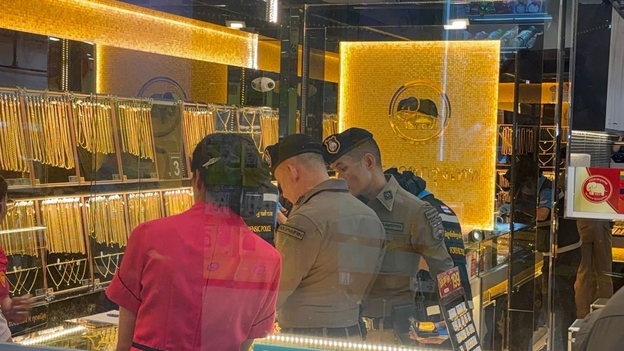 จากการตรวจสอบภาพจากกล้องวงจรปิดของร้านทองดังกล่าว สามารถจับภาพพนักงานกำลังยืนจัดของอยู่ภายในร้าน คนร้ายสวมเสื้อยืดสีขาวแขนสั้น กางเกงขายาวสีเทา สวมหมวกไอ้โม่งสีดำไว้บนหัว ไม่ปิดบังใบหน้า สวมรองเท้าผ้าใบสีเทาขาว สะพายกระเป๋าสีเทาขาว ในมือถือปืนอยู่ ได้กระโดดปีนข้ามตู้ด้านหน้าเข้าไปเอามือกวาดทองที่อยู่ในตู้ด้านหลังไป ก่อนจะรีบปีนแล้ววิ่งออกไป
