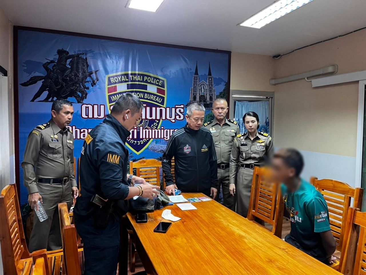 โดยเมื่อเวลาประมาณ 10.00 น. เจ้าหน้าที่ตำรวจตรวจคนเข้าเมืองจังหวัดจันทบุรี ประจำด่านผ่านแดนถาวรบ้านแหลม ได้รับแจ้งจากเจ้าหน้าที่ในพื้นที่ตลาดบ้านแหลม ว่าพบชายชาวกัมพูชาต้องสงสัยมีลักษณะตรงตามภาพจากกล้องวงจรปิด จึงเข้าทำการตรวจสอบ พบว่าเป็นบุคคลตามที่ต้องสงสัยจริง จากการสอบสวนเบื้องต้นผู้ต้องหาให้การรับสารภาพว่าเป็นผู้ลงมือก่อเหตุปล้นร้านทองดังกล่าวจริง