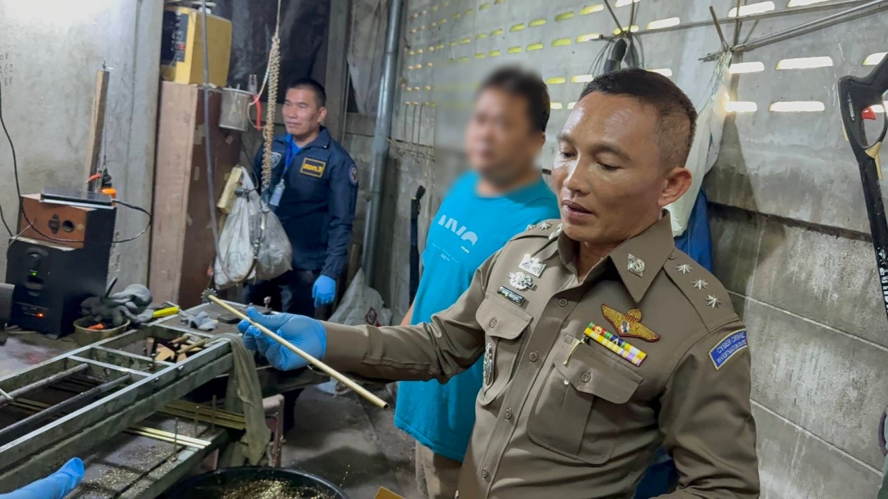 ทั้งนี้สืบเนื่องจากตำรวจชุดสืบสวน กก.1 บก.สอท.3 ตรวจพบการลักลอบจำหน่ายสินค้าประเภทท่อหรือลำกล้องปืน อุปกรณ์ชิ้นส่วนของอาวุธปืน และกระสุนปืน ผ่านแพลตฟอร์มขายสินค้าออนไลน์ชื่อดัง โดยมีการตั้งชื่อสินค้าเป็นสินค้าขายท่อทองเหลือง เพื่อหลีกเลี่ยงการถูกตรวจสอบจากเจ้าหน้าที่ จึงได้ทดลองสั่งซื้อท่อทองเหลือง พบว่าพัสดุที่สั่งซื้อถูกส่งมาจากพื้นที่ อ.เมือง จ.ร้อยเอ็ด เมื่อได้รับสินค้าแล้ว จึงได้ส่งตรวจพิสูจน์ที่ศูนย์พิสูจน์หลักฐาน 4 ผลตรวจพิสูจน์พบว่า สินค้าดังกล่าวเป็นชิ้นส่วนอาวุธปืนประเภทลำกล้องและมีเกลียวด้านใน จึงได้รวบรวมพยานหลักฐาน ขออนุมัติศาลจังหวัดร้อยเอ็ดออกหมายจับผู้เกี่ยวข้องและหมายค้นพื้นที่เป้าหมายทั้งสองจุด