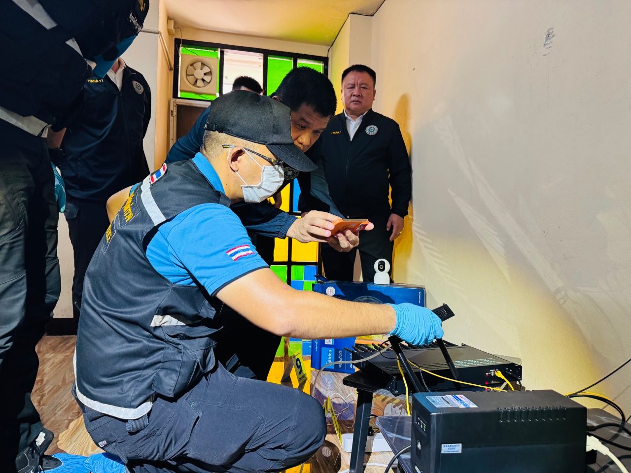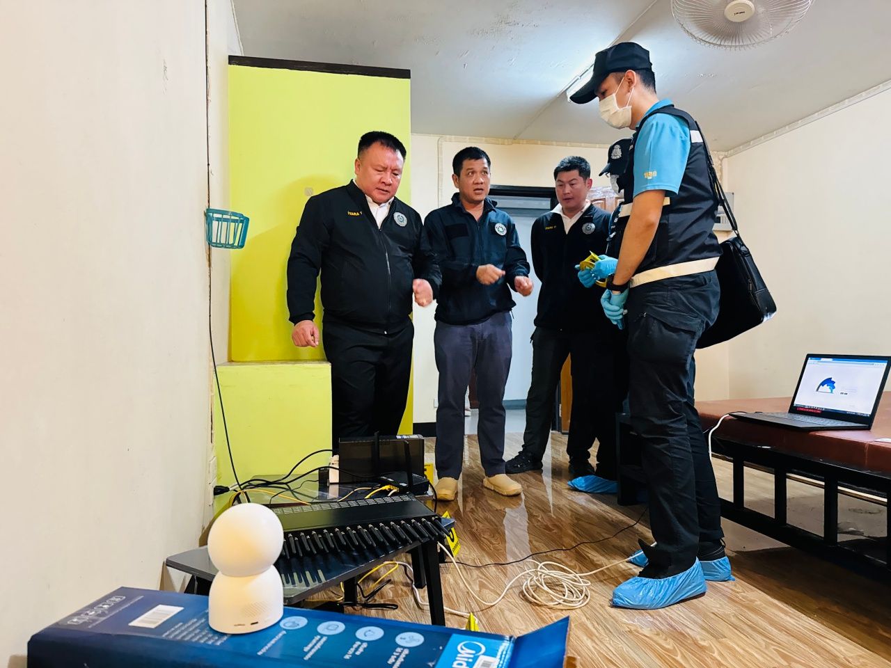 การตรวจค้นครั้งนี้สืบเนื่องจาก เมื่อวันที่ 20 ต.ค.68 พ.ต.อ.ประธาน นันทกอบกุล รอง ผบก.สส.ภ.1 ได้มีบุคคลโทรศัพท์เข้ามาแอบอ้างว่าเป็นเจ้าหน้าที่ของบริษัทเครือข่ายมือถือ อ้างว่า พ.ต.อ.ประธาน เปิดหมายเลขโทรศัพท์ และมีความเกี่ยวข้องกับแก๊งค้ายาเสพติดทางภาคใต้ มีเงินที่เกี่ยวข้องอีกด้วย ให้โอนเงินมาให้ตรวจสอบ ขณะที่กำลังจะขอหมายเลขบัญชีเพื่อจะโอนเงิน เพื่อให้ได้ข้อมูลของแก๊งคอลเซ็นเตอร์ แต่คนร้ายไหวตัวทันวางสายไป