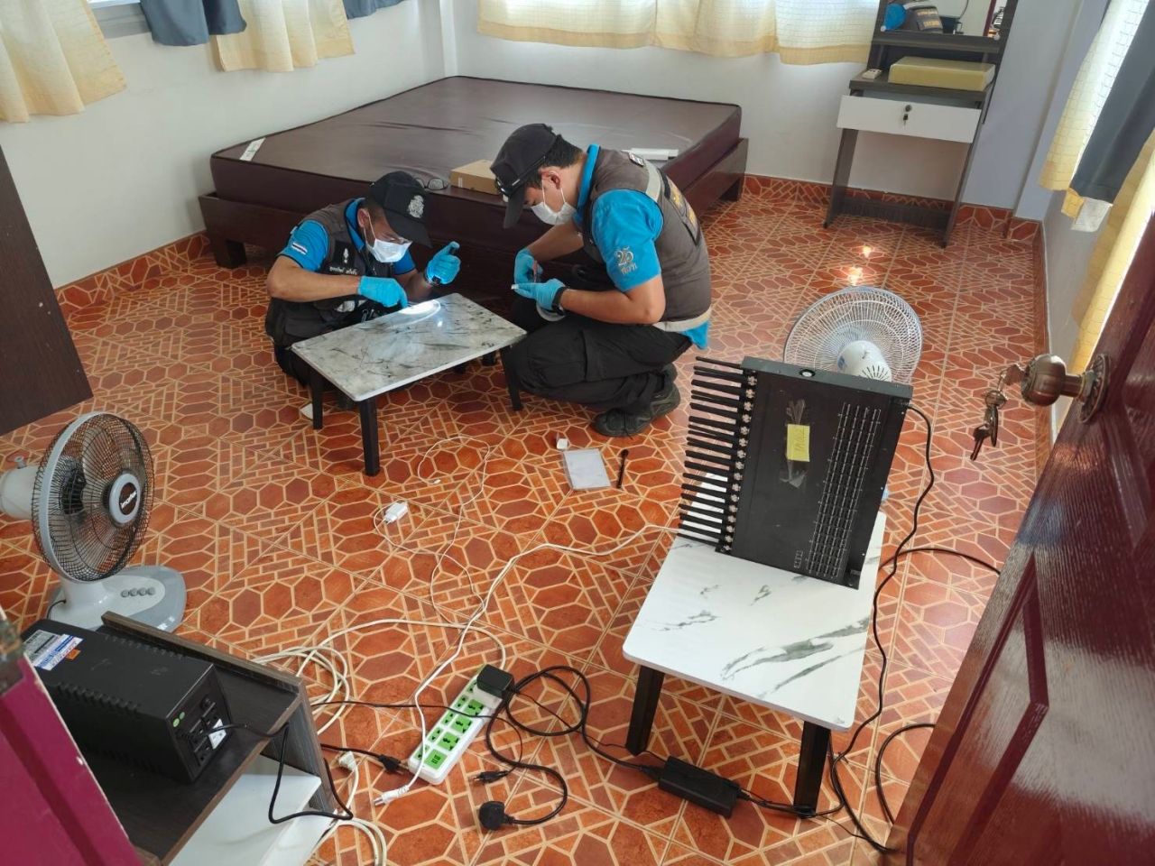 ทั้งนี้ ก่อนที่จะทำการตรวจค้นบ้านหลังดังกล่าว เจ้าหน้าที่ตำรวจ ภ.จว.สระแก้ว ได้รับข้อมูลจากศูนย์วอร์รูมฯ เกี่ยวกับหมายเลขโทรศัพท์ที่เชื่อว่าแก๊งคอลเซ็นเตอร์ใช้หลอกลวงประชาชน ว่าได้เปิดเบอร์โทรศัพท์และมีการใช้งานในพื้นที่ อ.เมือง จ.สระแก้ว ต่อมา บก.สส.ภ.2 ได้ประสานข้อมูลและลงพื้นที่สืบสวน ร่วมกับเจ้าหน้าที่ตำรวจ กก.สส.ภ.จว.สระแก้ว ผลการสืบสวนพบว่า บริเวณพิกัดบ้านหลังดังกล่าว ซึ่งเป็นห้องเช่า น่าเชื่อว่าจะเป็นจุดติดตั้งซิมบ็อกซ์ (เครื่องแปลงสัญญาณโทรศัพท์)