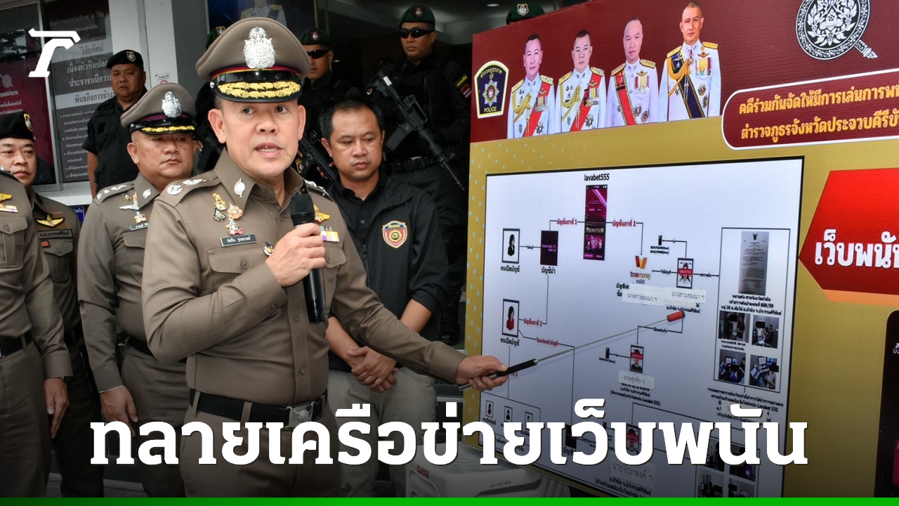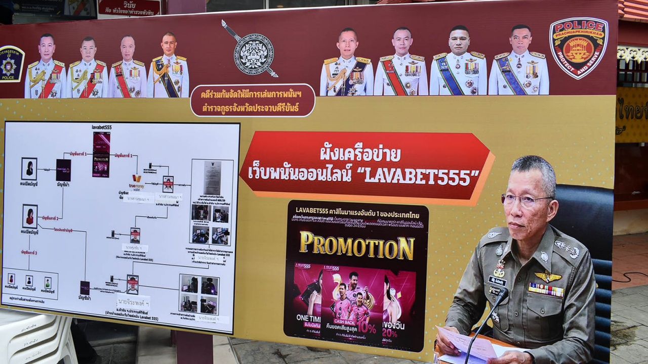 รอง ผบช.ภาค 7 ร่วมกับ ผบก.จ.ประจวบคีรีขันธ์ แถลงการทลายเครือข่ายเว็บพนัน "lavabet555" จับกุม 3 ผู้ต้องหา ทำหน้าที่แอดมินดูแลเว็บ เงินหมุนเวียนกว่า 300 ล้าน