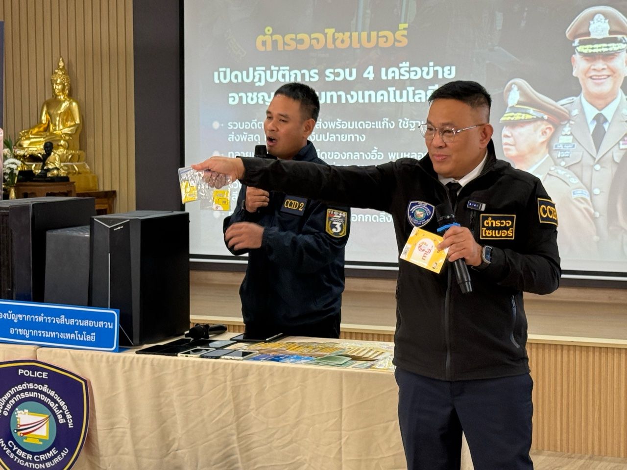 วันที่ 31 ต.ค. 68 ที่กองบัญชาการตำรวจสืบสวนสอบสวนอาชญากรรมทางเทคโนโลยี (บช.สอท.) เมืองทองธานี อ.ปากเกร็ด จ.นนทบุรี พล.ต.ท.สุรพล เปรมบุตร ผบช.สอท. พล.ต.ต.ชัชปัณฑกานต์ คล้ายคลึง รอง ผบช.สอท. พล.ต.ต.ศรายุทธ จุณณวัตต์ ผบก.สอท.2 พ.ต.อ.ปกรกิตติ์ ธนวรินทร์กุล ผกก.3 บก.สอท.2 พ.ต.อ.อดิชาติ อมรประดิษฐ์ ผกก.วิเคราะห์ข่าวฯ บก.สอท.3 ร่วมแถลงปฏิบัติการทลายขบวนการแก๊งส่งพัสดุหลอกเหยื่อเก็บเงินปลายทาง มีรายได้เฉลี่ย 5 แสนบาทต่อเดือน