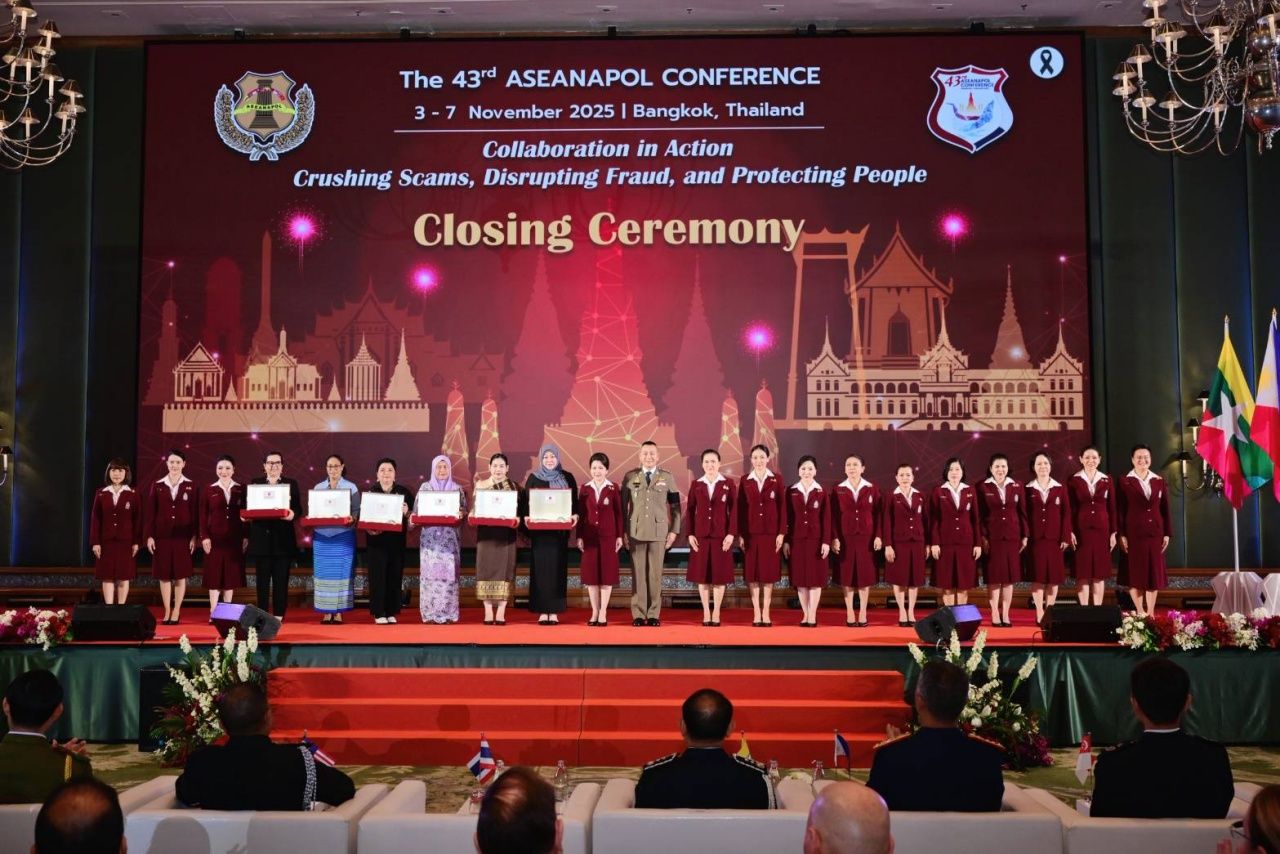 วันที่ 6 พฤศจิกายน 2568 เวลา 14.00 น. พล.ต.อ.กิตติ์รัฐ พันธุ์เพ็ชร์ ผู้บัญชาการตำรวจแห่งชาติ (ผบ.ตร.) เป็นประธานปิดการประชุมหัวหน้าตำรวจอาเซียน ครั้งที่ 43 โดยมี พล.ต.อ.กรไชย คล้ายคลึง รอง ผบ.ตร., พล.ต.ท.ยิ่งยศ เทพจำนงค์ ผู้ช่วย ผบ.ตร., พล.ต.ท.อาชยน ไกรทอง ผู้บัญชาการตำรวจปราบปรามยาเสพติด, คณะสมาคมแม่บ้านตำรวจ นำโดย คุณกนกวรรณ พันธุ์เพ็ชร์ นายกสมาคมแม่บ้านตำรวจ และผู้เข้าร่วมการประชุม ร่วมพิธี ณ ห้องแกรนด์บอลรูม โรงแรมแกรนด์ไฮแอท เอราวัณ กรุงเทพมหานคร