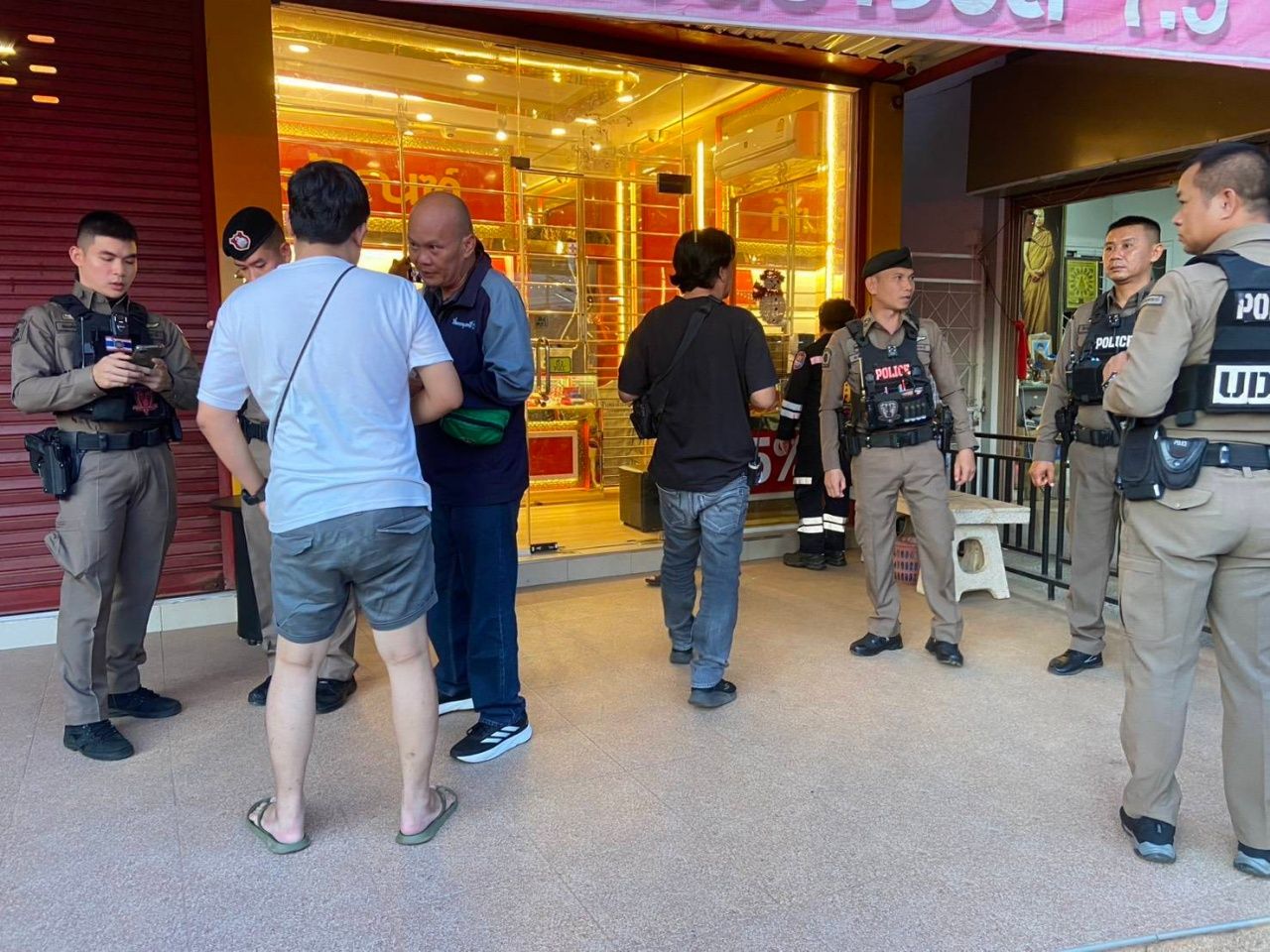 เมื่อเจ้าของร้าน ซึ่งเป็นผู้หญิง ตรวจสอบและแจ้งว่าไม่ใช่ทองแท้ คนร้ายจึงชักอาวุธปืนพกสั้น ขนาด 9 มม.ยี่ห้อ TAURUS รุ่น G30 ขึ้นมาขู่ พร้อมขอเงินสด 2 แสนบาท จากทางเจ้าของร้าน เจ้าของร้านจึงรีบหลบเข้าไปหลังร้านพร้อมหยิบอาวุธปืนพกสั้นลูกโม่ ขนาด .38 ยี่ห้อ SMITH & WESSON มายิงขู่ จึงเกิดการยิงปะทะขึ้นภายในร้าน