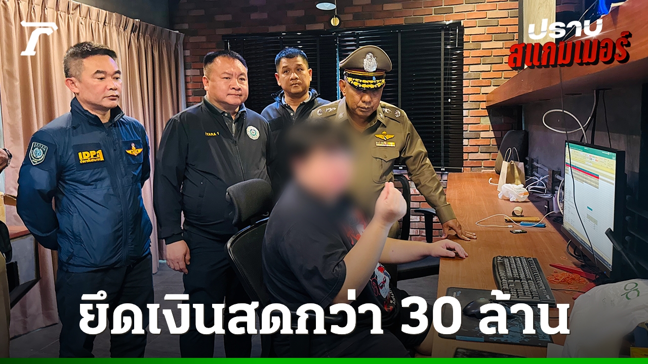 ตำรวจตรวจค้นคดีพนันออนไลน์ 2 จุด จับผู้เกี่ยวข้อง 10 ราย ยึดของกลางเป็นเงินสด 30,324,600 บาท เครื่องนับเงิน 2 เครื่อง บัตรเอทีเอ็ม(บัญชีม้า) 100 ใบ