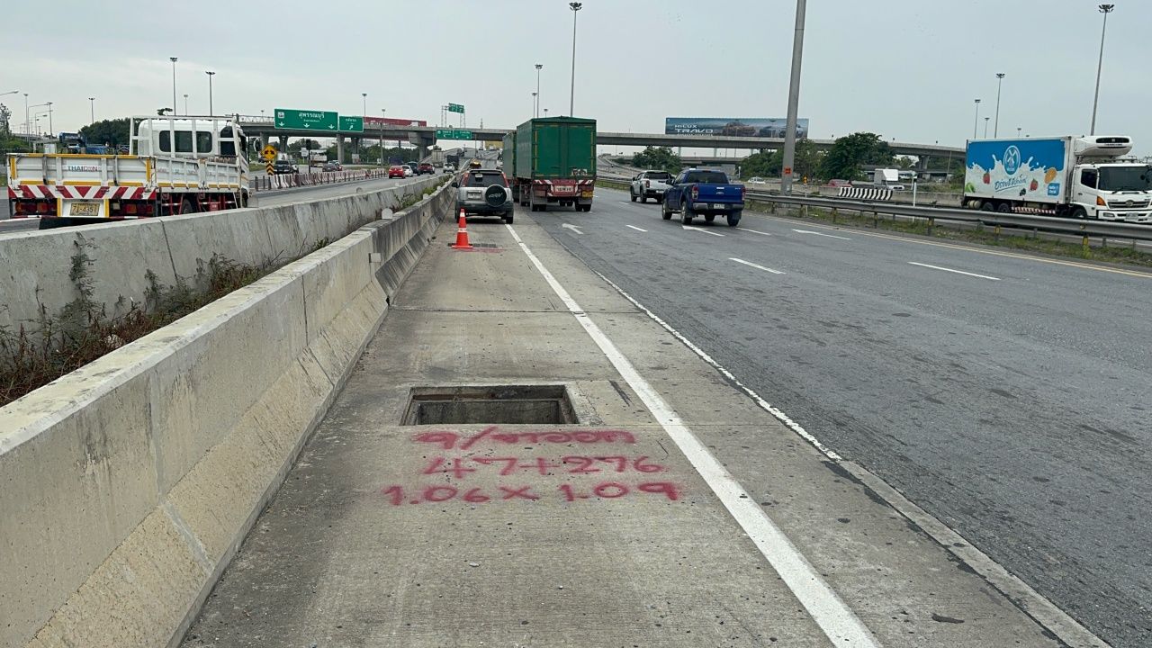 วันที่ 17 พ.ย. 68 ผู้สื่อข่าวได้รับแจ้งจากประชาชนว่า ฝาตะแกรงเหล็กของบ่อพักท่อระบายน้ำ ถนนกาญจนาภิเษก ขาออก ต.ละหาร อ.บางบัวทอง จ.นนทบุรี ก่อนถึงแยกต่างระดับบางบัวทอง หายไปจำนวนมาก จึงได้ลงพื้นที่ตรวจสอบพบว่าฝาตะแกรงเหล็กของบ่อพักท่อระบายน้ำในช่องทางหลัก ได้หายไปจำนวน 23 บ่อพัก บางบ่อหายไปทั้งหมด 2 ชิ้น บางบ่อหายไปเพียงชิ้นเดียว ซึ่งเจ้าหน้าที่แขวงทางหลวงบางบัวทอง ได้นำแบริเออร์สีส้มมาวางไว้ เพื่อไม่ให้ประชาชนขับรถตกลงไปในบ่อพักที่ไม่มีฝาตะแกรงปิดกั้น โดยจากการตรวจสอบ พบว่าตะแกรงเหล็กหายไปทั้งหมด 40 ชิ้น จาก 23 บ่อพัก