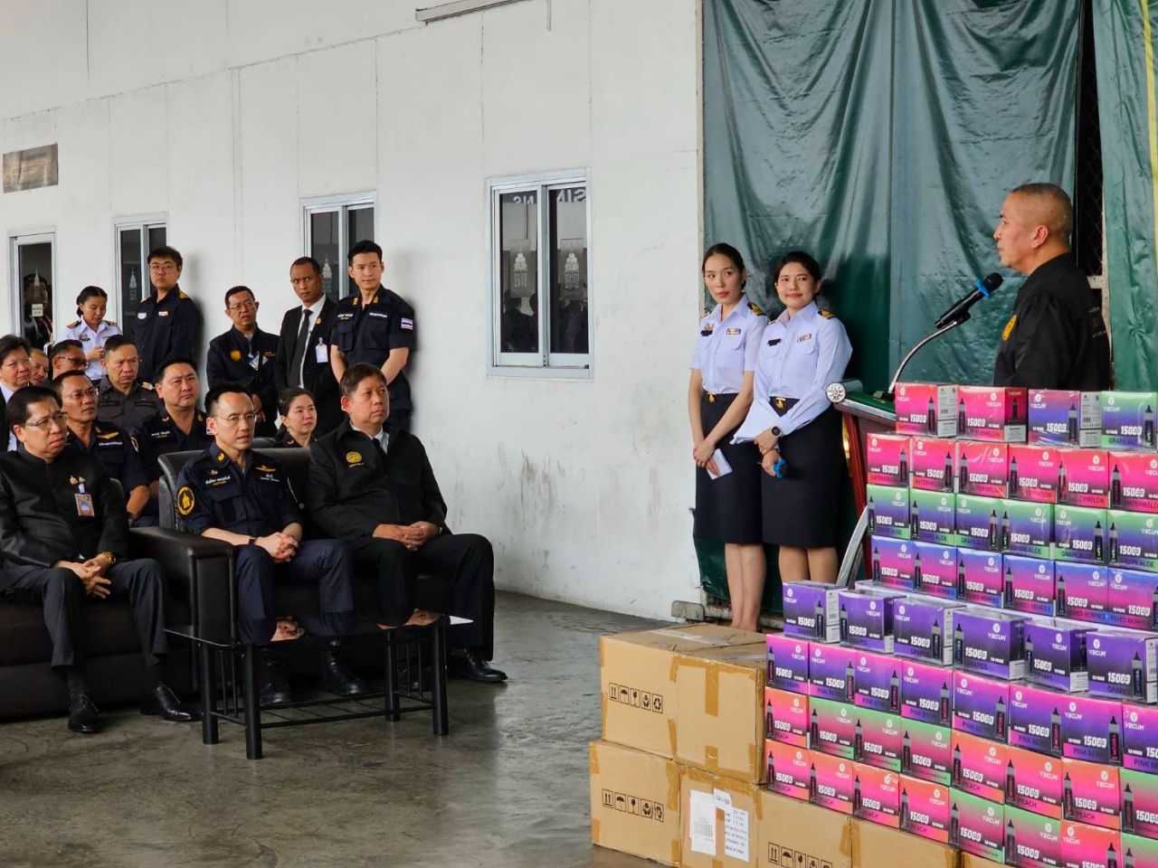 สืบเนื่องจากนโยบายเร่งด่วน (Quick Win) ของรัฐบาล นายอนุทิน ชาญวีรกูล นายกรัฐมนตรี ที่มุ่งเน้นการปราบปรามสินค้าผิดกฎหมายอย่างจริงจัง เมื่อวันที่ 4 ธันวาคม 2568 เจ้าหน้าที่ชุดปฏิบัติการร่วมได้เข้าตรวจสอบตู้สินค้าตกค้างจำนวน 7 ตู้ ณ สำนักงานศุลกากรท่าเรือกรุงเทพ จากการตรวจค้นโดยละเอียด พบว่าคนร้ายมีพฤติการณ์อำพราง โดยนำบุหรี่ไฟฟ้าคละกลิ่นซุกซ่อนปะปนอยู่กับสินค้าเบ็ดเตล็ดภายในตู้คอนเทนเนอร์ เพื่อหวังหลบเลี่ยงการสแกนและการตรวจค้นของเจ้าหน้าที่ จึงทำการตรวจยึดของกลางทั้งหมดไว้