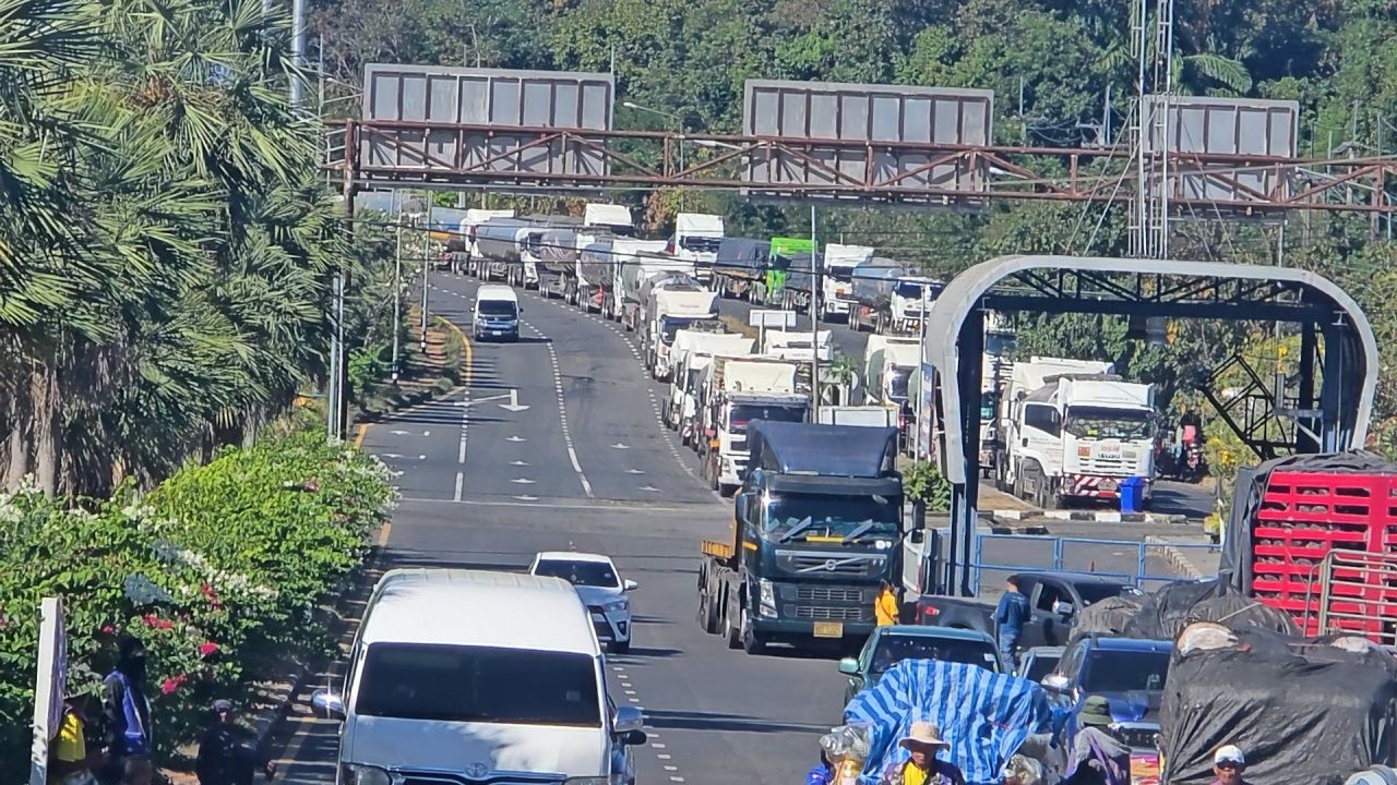 เมื่อวันที่ 15 ธันวาคม 2568 ผู้สื่อข่าวรายงานบรรยากาศที่ด่านช่องเม็ก อำเภอสิรินธร จังหวัดอุบลราชธานี พล.ต.ต.ไพรัช พุกเจริญ ผบก.ตม.4 พร้อมด้วย นายอาชว์ พดด้วง นายด่านศุลกากรช่องเม็ก กอ.รมน. ได้ร่วมกันสังเกตการณ์และตรวจสอบรถบรรทุกน้ำมันที่จอดรอเพื่อข้ามไปส่งน้ำมันยังคลังน้ำมันใน สปป.ลาว เช้าวันนี้ (15 ธ.ค.68) ปรากฏมีรถบรรทุกน้ำมันขนาด 22 ล้อ ซึ่งมาจอดรอข้ามแดนตั้งแต่เมื่อคืนจำนวนนับ 100 คัน ที่ศุลกากรไม่อนุญาตให้รถข้ามแดนเข้าไปยังประเทศเพื่อนบ้านตามคำสั่งของกองทัพภาคที่ 2 เพื่อเป็นยุทธปัจจัยให้แก่ทหารกัมพูชา ทำให้คนขับรถบรรทุกน้ำมันต้องจอดรอคำสั่งของบริษัทจะให้นำน้ำมันที่บรรทุกมาไปเก็บหรือส่งที่ใด